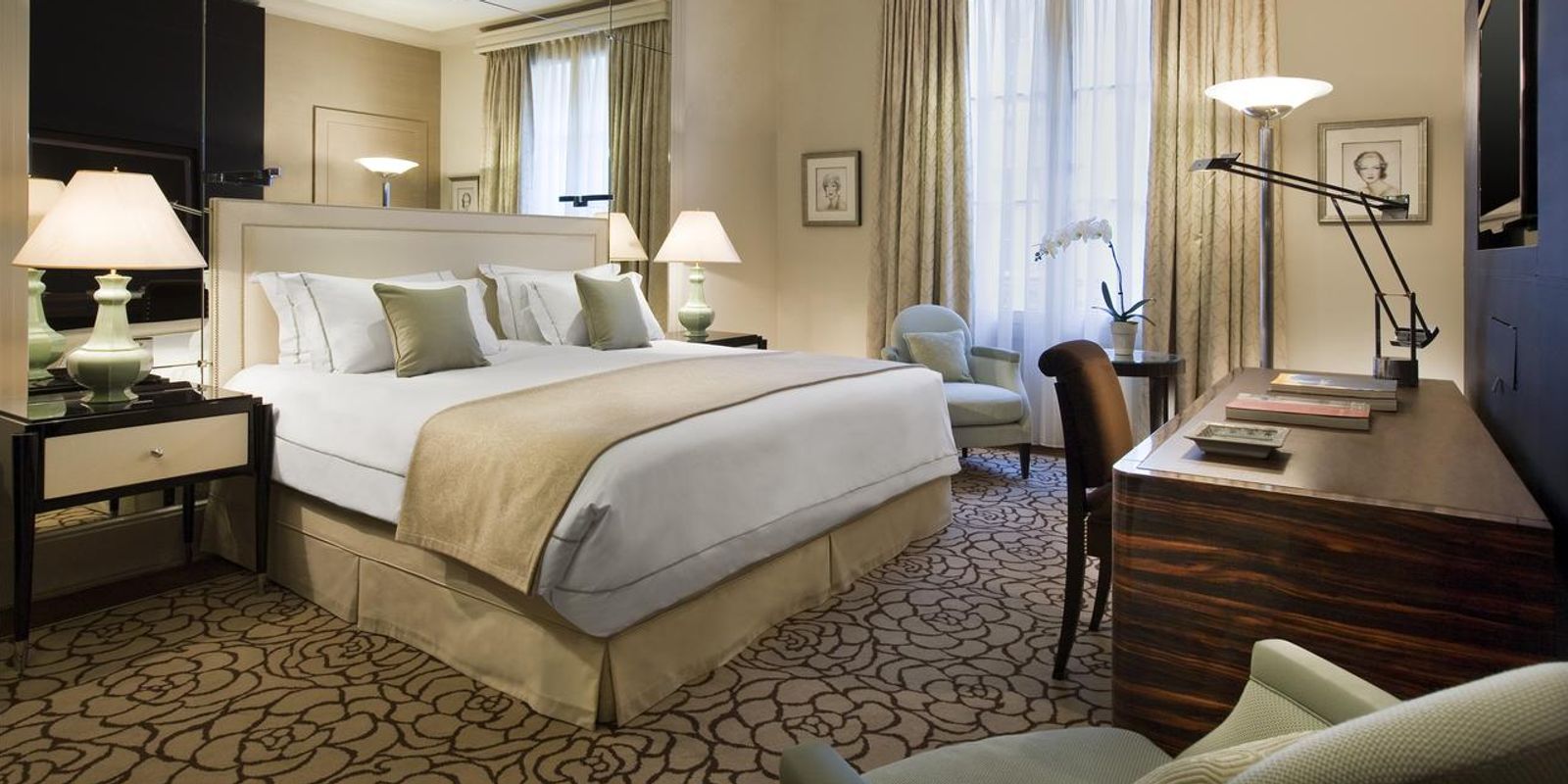 К услугам гостей — номера и люксы в стиле ар-деко со заметными акцентами: позолоченными канделябрами, мраморными полами, природными колоритами в элементах и мозаикой. Некоторые люксы выходят на балкон с видом на Париж.