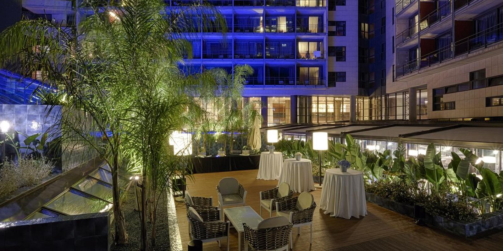 К услугам гостей — два больших открытых бассейна — на крыше и в саду, большая сезонная терраса с шезлонгами, фитнес-зал, СПА-центр, 2 сезонных коктейль-бара, современный бар Tendiez с открытой террасой, который работает круглый год, а также конференц-залы и бизнес-центр.