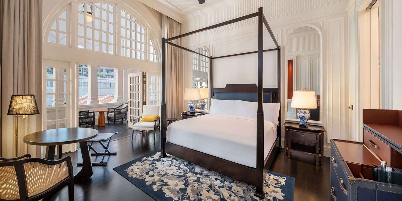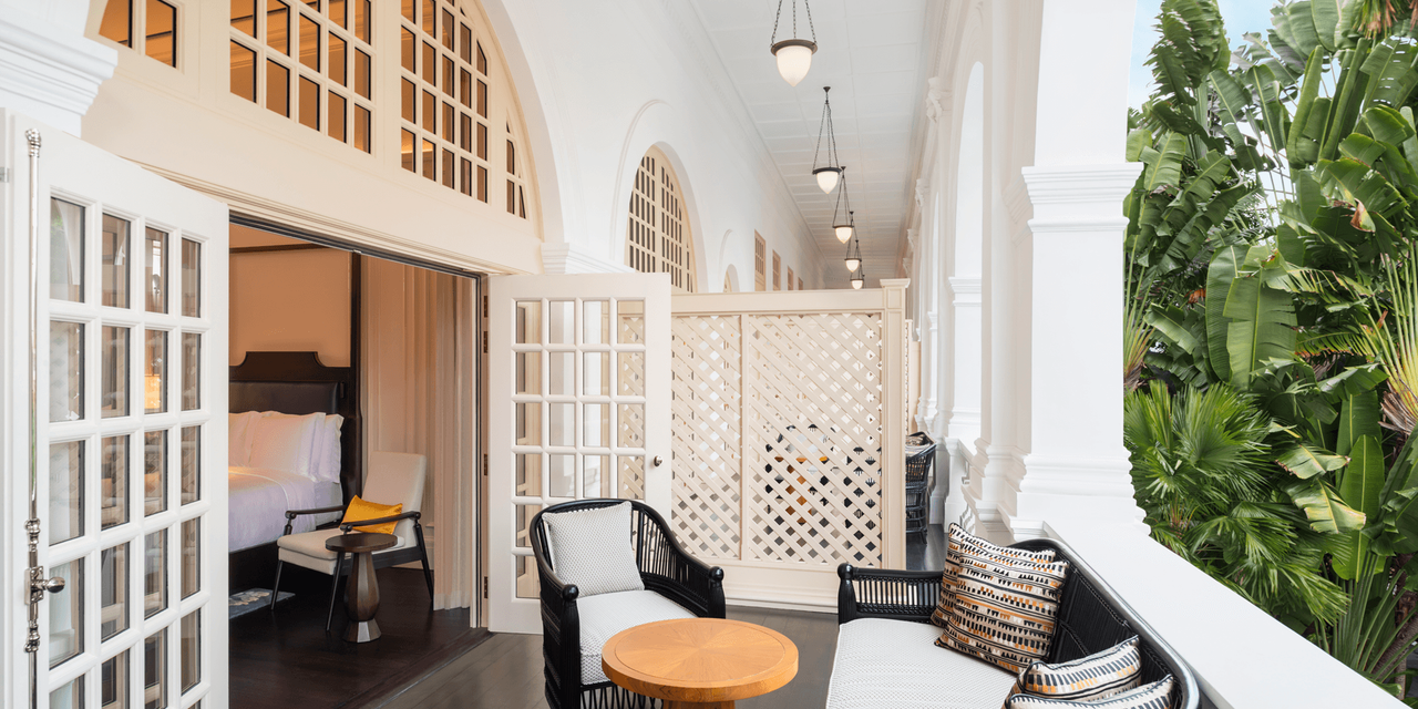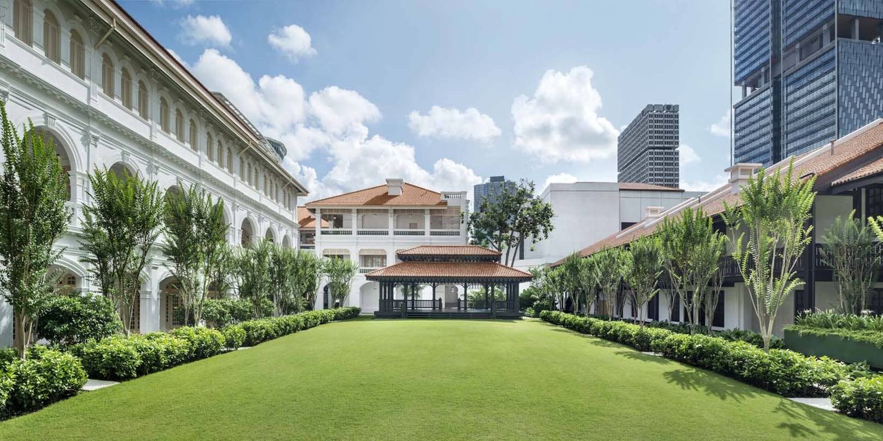 Символ старого Сингапура, одна из главных исторических достопримечательностей города-государства: открытие гостиницы в 1887 году было приурочено к золотому юбилею правления королевы Виктории. Довольно быстро Raffles Hotel стал брендом, вместившим в себя золотой стандарт колониальной жизни. Комфорт постояльцев обеспечивался революционным для своего времени наличием электрического света и потолочных вентиляторов, были здесь свой танцевальный зал (Ball Room) и бар (Long Bar) со знаменитым коктейлем Singapore Sling на основе джина и шерри-бренди с ананасовым соком и непременной вишенкой на ободке бокала. Завсегдатаями Raffles Hotel были именитейшие английские авторы (Киплинг, Конрад, Моэм), добрым словом упоминавшие отель в своих письмах и даже литературных произведениях.