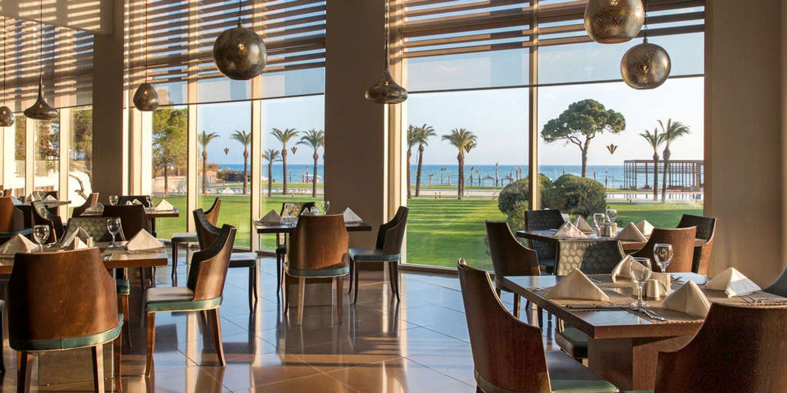 К услугам гостей — восемь баров, в том числе у бассейна и на пляже, и восемь ресторанов. Представлены турецкая, итальянская, азиатская и международная кухни и гастрономические шедевры от приглашённых шефов. Анфилады залов и терраса главного ресторана Turquoise вмещают до 900 гостей.