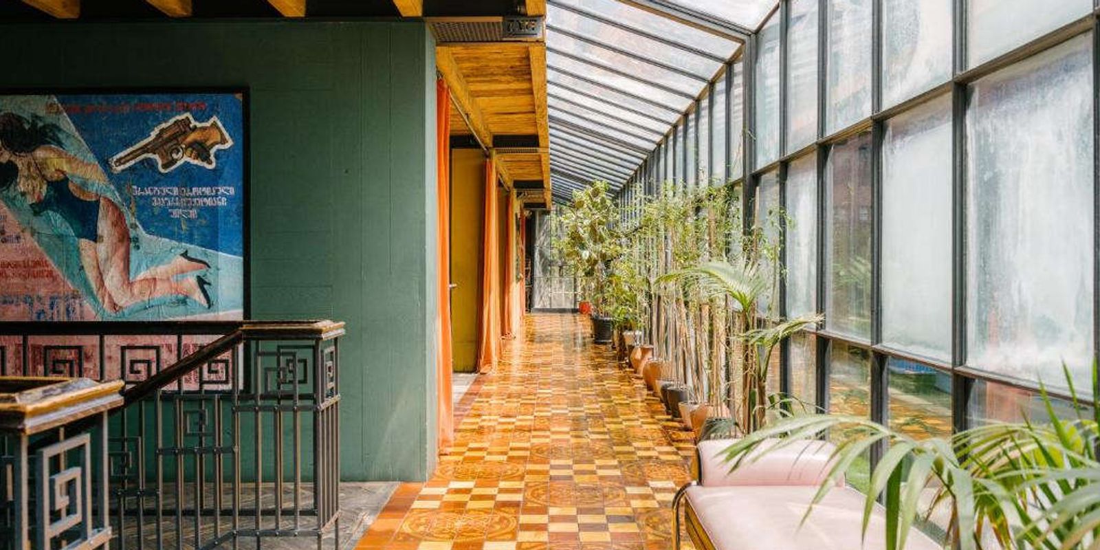 Отель занимает здание бывшей советской типографии — бруталистские приметы советской эпохи не убрали, но изящно обыграли. В холлах и номерах полы из восстановленного дерева, кожаная мебель, винтажное освещение и шёлковые обои создают атмосферу Нью-Йорка 1930-х годов. Ресторан The Kitchen, в свою очередь, отличается парижским шармом. В меню — креативная современная кухня, основанная на принципах farm-to-table (у отеля своя теплица и оранжерея). В пентхаусах — террасы с видом на весь Тбилиси.