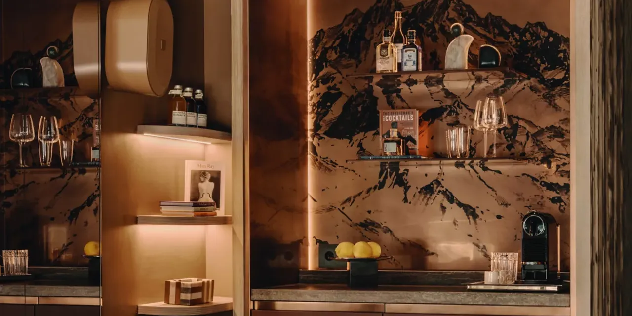Интерьеры общественных пространств и 52 номеров, включая сьюты, оформлены знаменитым дизайнером Тристаном Оэром в классическом стиле горных шале: дерево, камень, сдержанная природная палитра. Программные виды на заснеженные вершины прилагаются.
