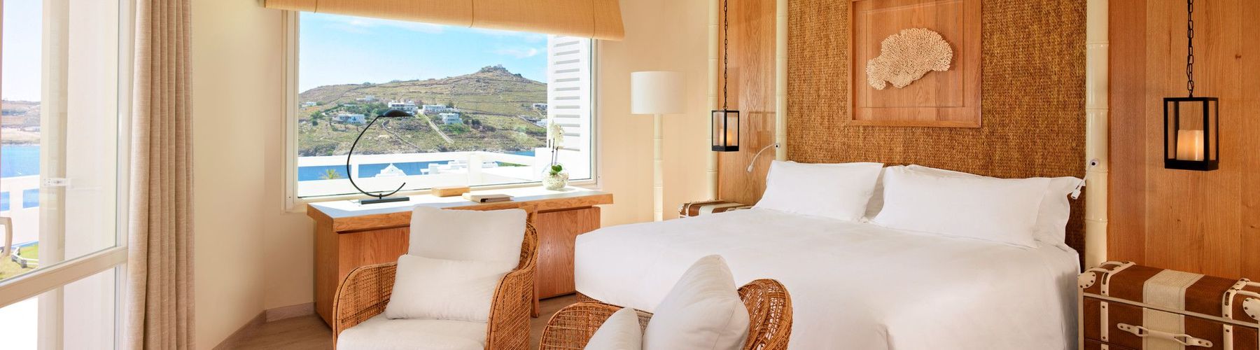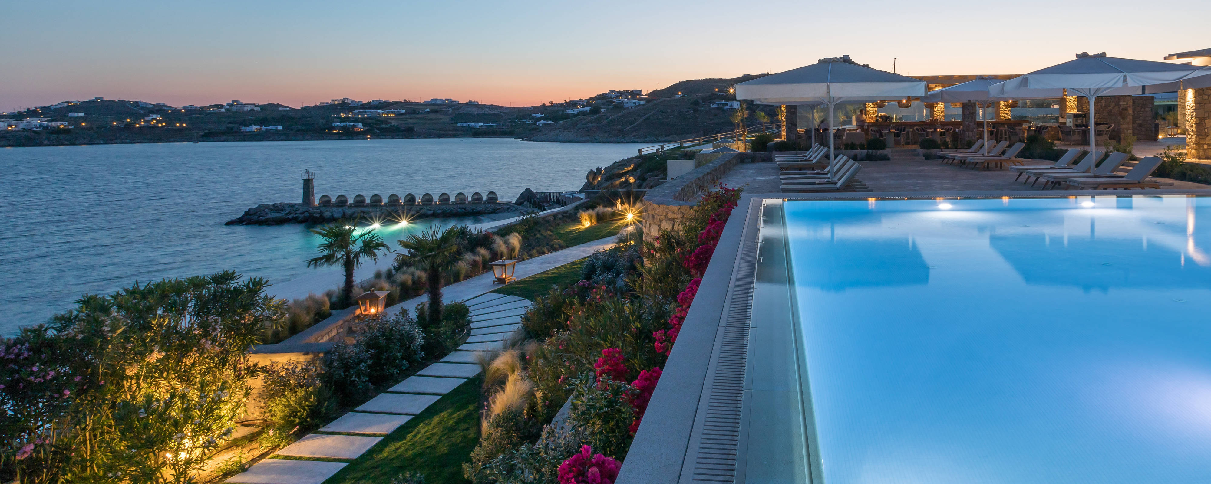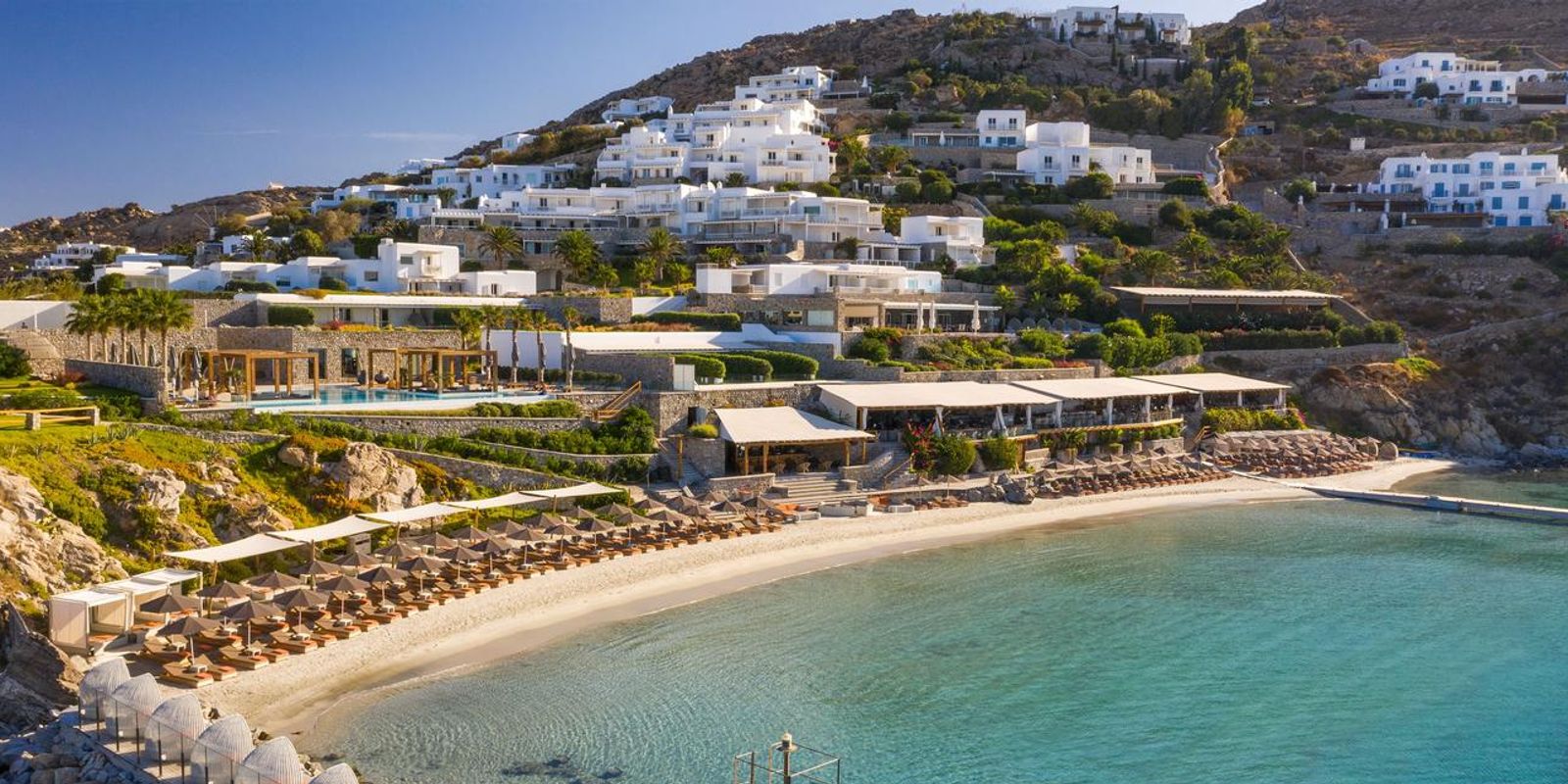 К услугам гостей: единственный частный песчаный пляж на Миконосе; эксклюзивно представленные на острове пенные процедуры в хаммаме; несколько ресторанов, включая средиземноморский, французский и паназиатский; первый в мире Buddha-Bar Beach и бассейн Oasis Pool & Lounge только для взрослых.