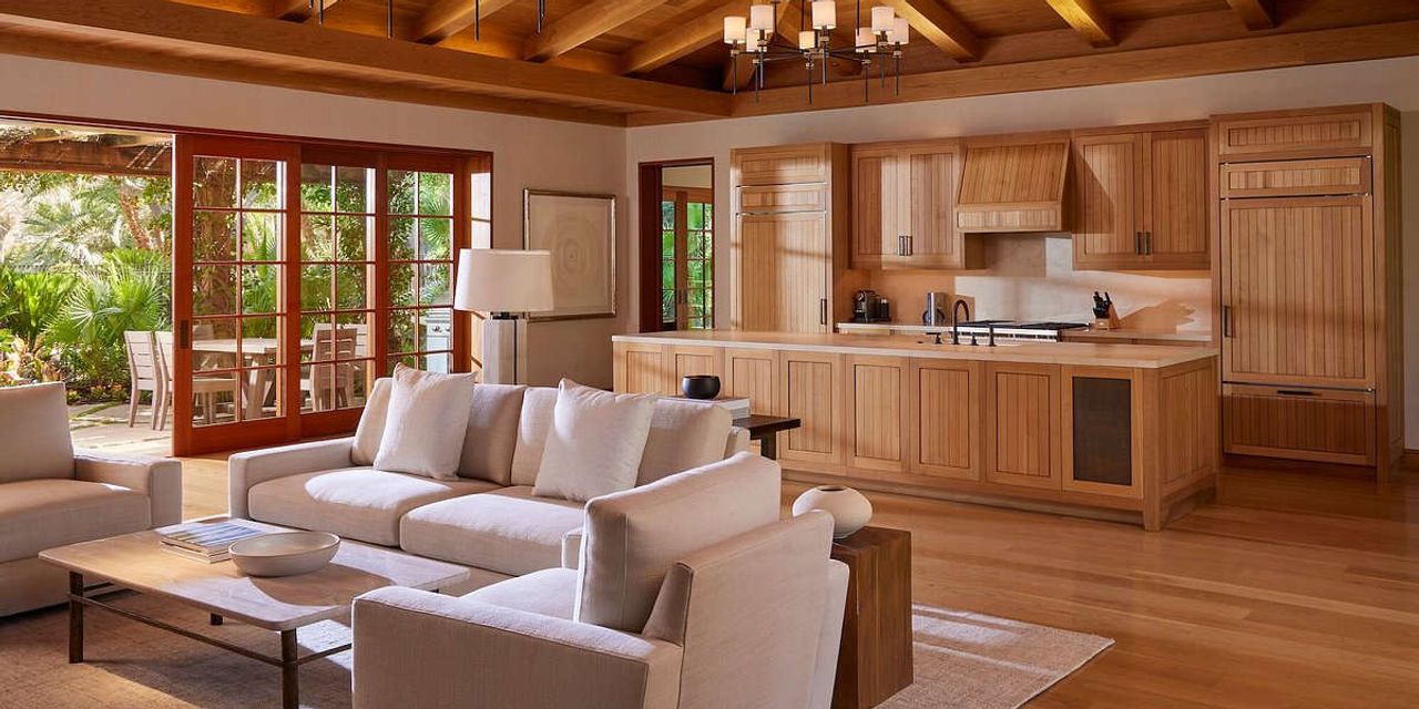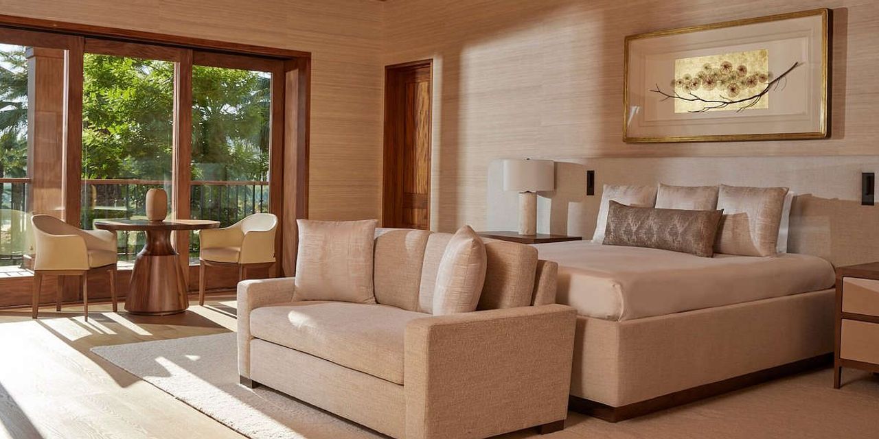 На выбор предлагаются частные резиденции с двумя-четырьмя спальнями, каждая из которых спроектирована по принципу открытого жилого пространства с полностью оборудованными кухнями, столовыми и гостиными. Парящие потолки, натуральное дерево, широкие окна, обрамляющие пышные зеленые сады.