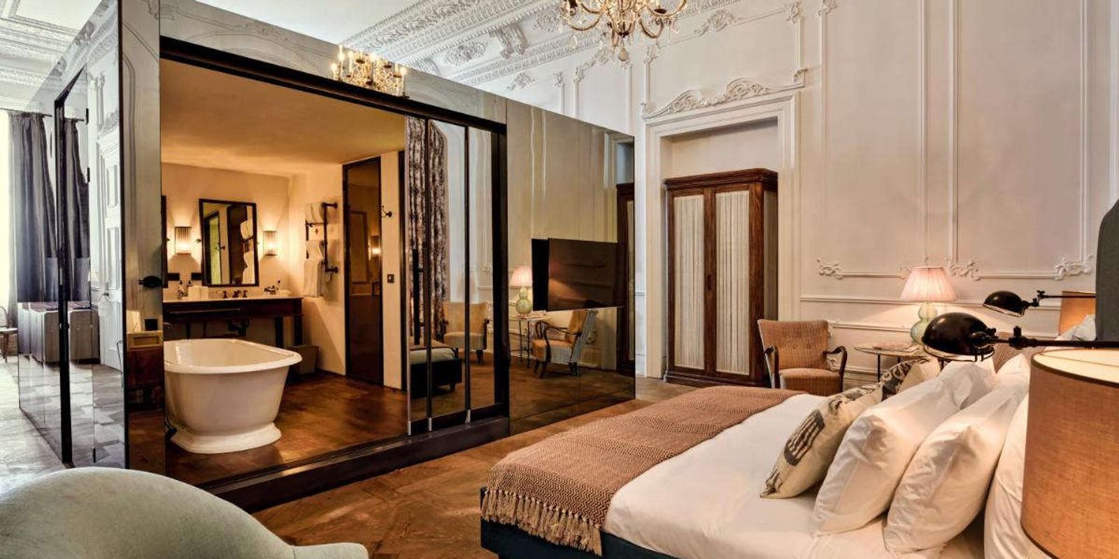 Современный дизайн идеально сочетается здесь со стариной. Так, в здании бережно сохранили оригинальные элементы: великолепные фрески XIX века, лепнину, мраморные полы и двери из розового дерева. 87 стильных и элегантных номеров, включая апартаменты с террасой и джакузи, оформлены с большим вкусом и идеально подходят для романтического отдыха. А ценителей искусства порадует частная коллекция современых арт-объектов, включающая более 500 произведений.