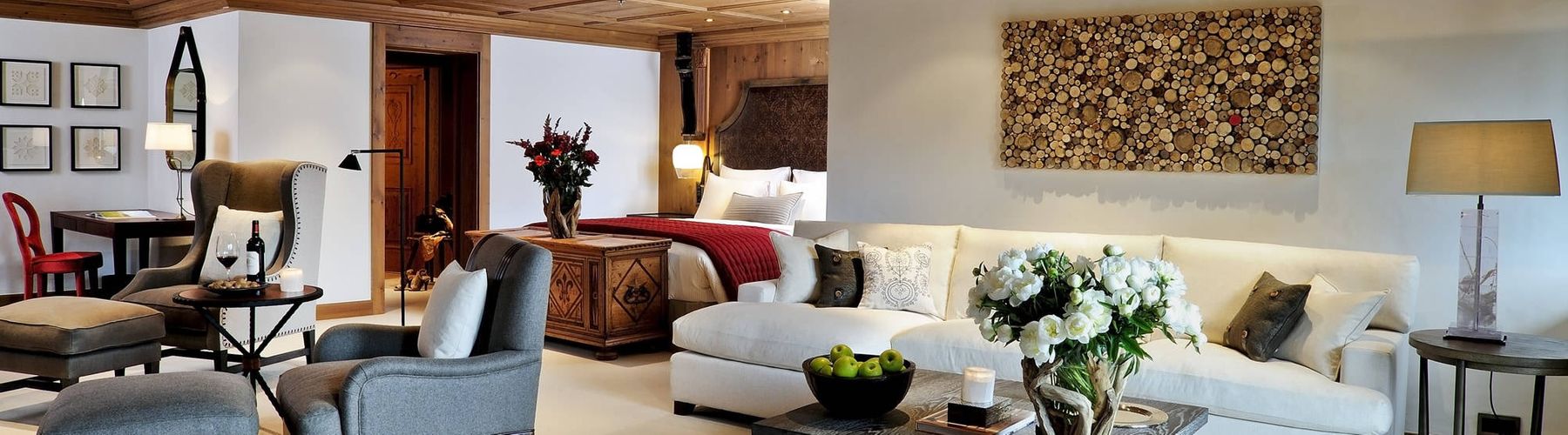 The Alpina Gstaad — уединённый отель в живописных швейцарских Альпах, сочетающий традиции гостеприимства и современную элегантность. Расположенный на возвышенности с панорамными видами на Гштаад, он окружён хвойными лесами и горными лугами. Интерьеры оформлены с акцентом на натуральные материалы: массивное дерево, камень и тёплая текстура тканей создают уютную атмосферу альпийского шале. В каждом номере и люксе предусмотрены просторные террасы, из которых открывается захватывающий вид на заснеженные вершины.