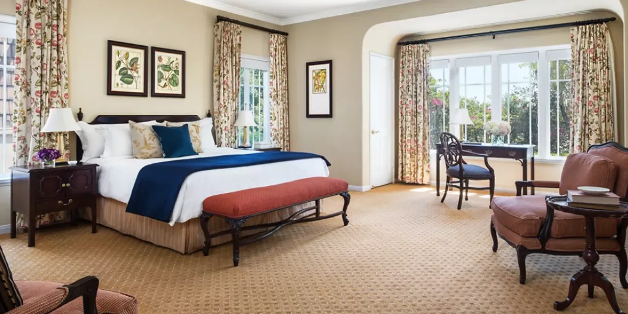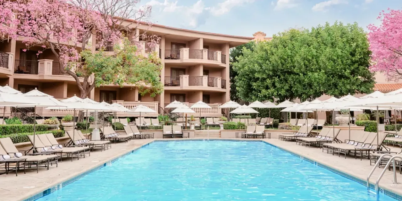 Занимающий 9 гектаров ухоженных садов, отель насчитывает 379 номеров, 38 люксов, включая двухэтажный Tournament of Roses с двумя спальнями, роялем, джакузи и отдельным входом, и 8 частных вилл. Интерьеры, демонстрирующие архитектуру эпохи возрождения миссии Пуэбло, изобилуют дорогим деревом, на обширных террасах теснятся шезлонги, а французские двери люксов на первых этажах распахиваются во внутренние симпатичные дворики.