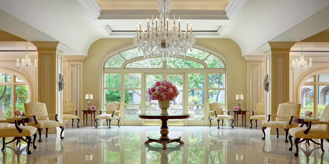 Гостям доступны три великолепных исторических бальных зала, три теннисных корта и спа-салон Chuan Spa, специализирующийся на ритуалах традиционной китайской медицины. На террасе у бассейна подают современную калифорнийскую кухню (внимание чаудеру с моллюсками на сливках!), в лобби-баре Tap Room смешивают отличные коктейли и держат большую коллекцию крафтового пива, стейк-хаус Royce славится лучшими отрубами говядины со всего мира, доведёнными до совершенства на углях.