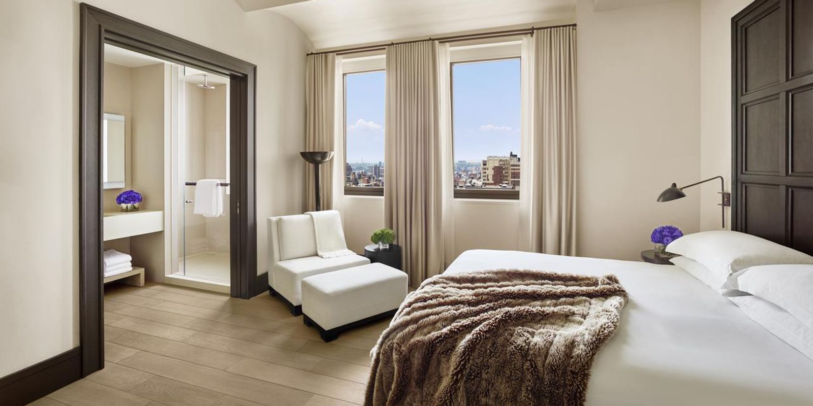 Светлые просторные номера оформлены в пастельных тонах с использованием современных природных материалов. Все номера оснащены большими окнами с потрясающим видом на город и украшены фотографиями Мелвина Сокольского.