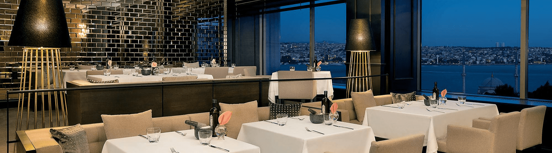 Кулинарные впечатления обеспечивают рестораны Nobu Istanbul (японско-перуанская кухня от знаменитого шеф-повара Нобу Мацухисы) и Atölye (современная турецкая кухня с акцентом на сезонные продукты; рекомендация Мишлен). На террасе с видом на Босфор работает Bleu Lounge & Grill, где подают коктейли, блюда на гриле и закуски в расслабленной атмосфере. Для неспешного отдыха — элегантный Nobu Lounge с авторскими напитками и лёгкими угощениями.