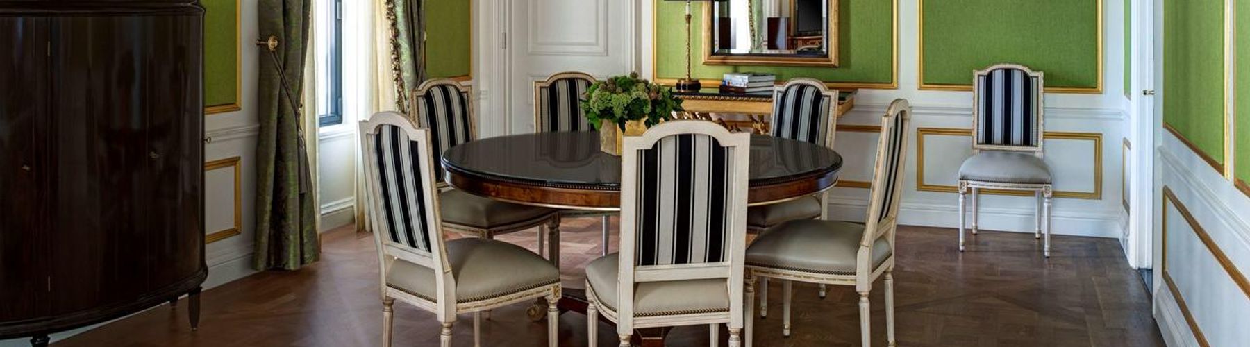 Для размещения предлагается 171 комната и 67 сьютов, украшенных хрустальными подсвечниками и элегантной лепниной в сочетании с произведениями современного искусства, яркими тканями и зеркалами оригинальной формы.