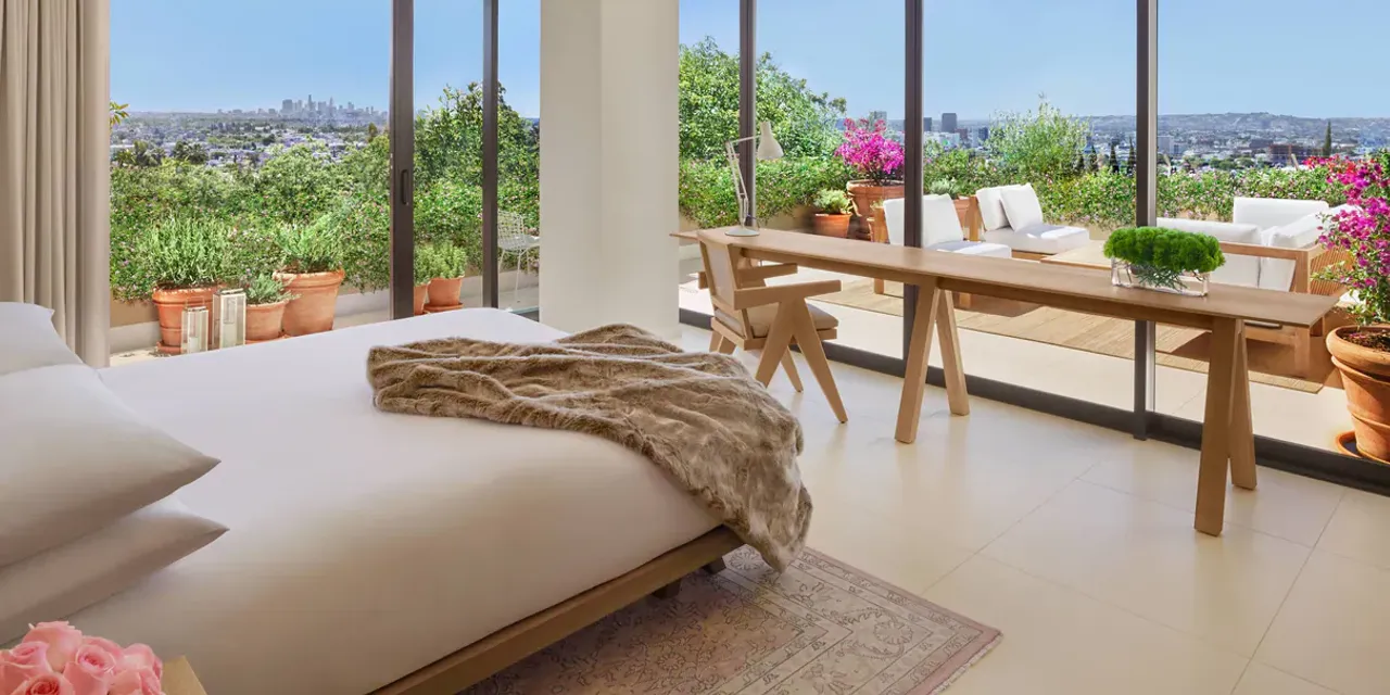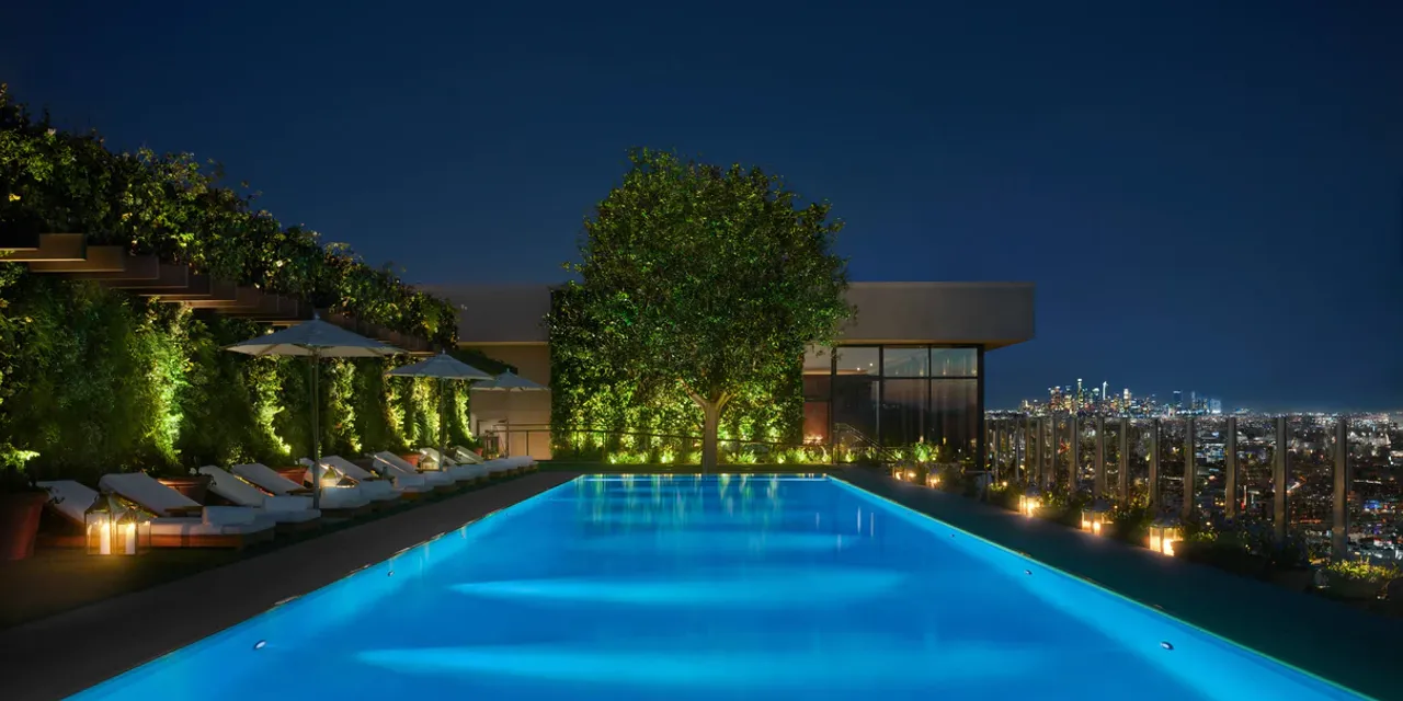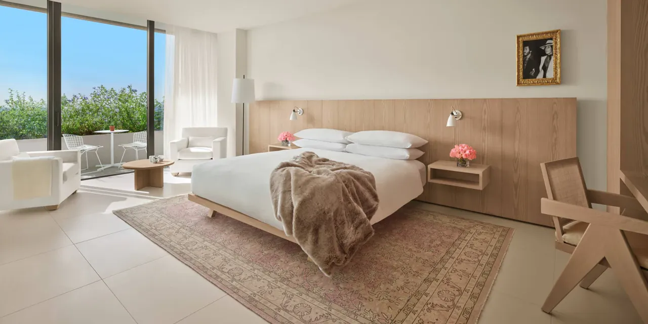 Британский архитектор-минималист Джон Поусон привнес в Южную Калифорнию модернистские традиции: 190 номеров, 48 просторных люксов и 2 пентхауса с открытыми террасами оформлены по последней моде и украшены роскошными деталями от Яна Шрагера, соучредителя Studio 54. В окнах от пола до потолка – открыточные виды Лос-Анджелеса и Голливудских холмов.
