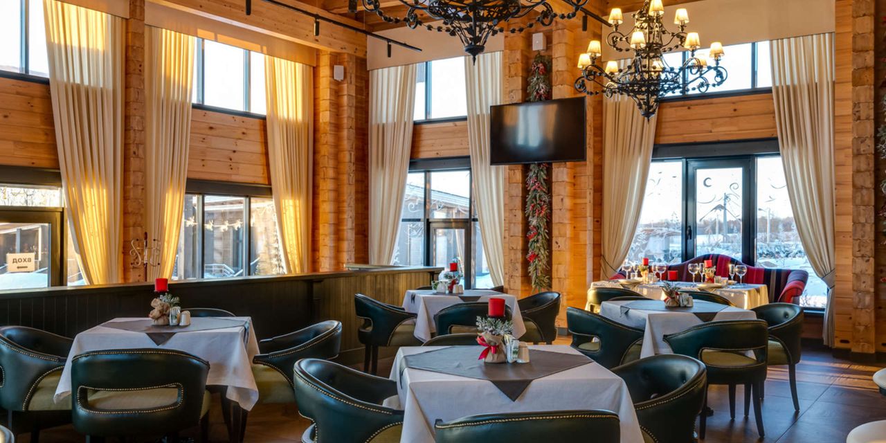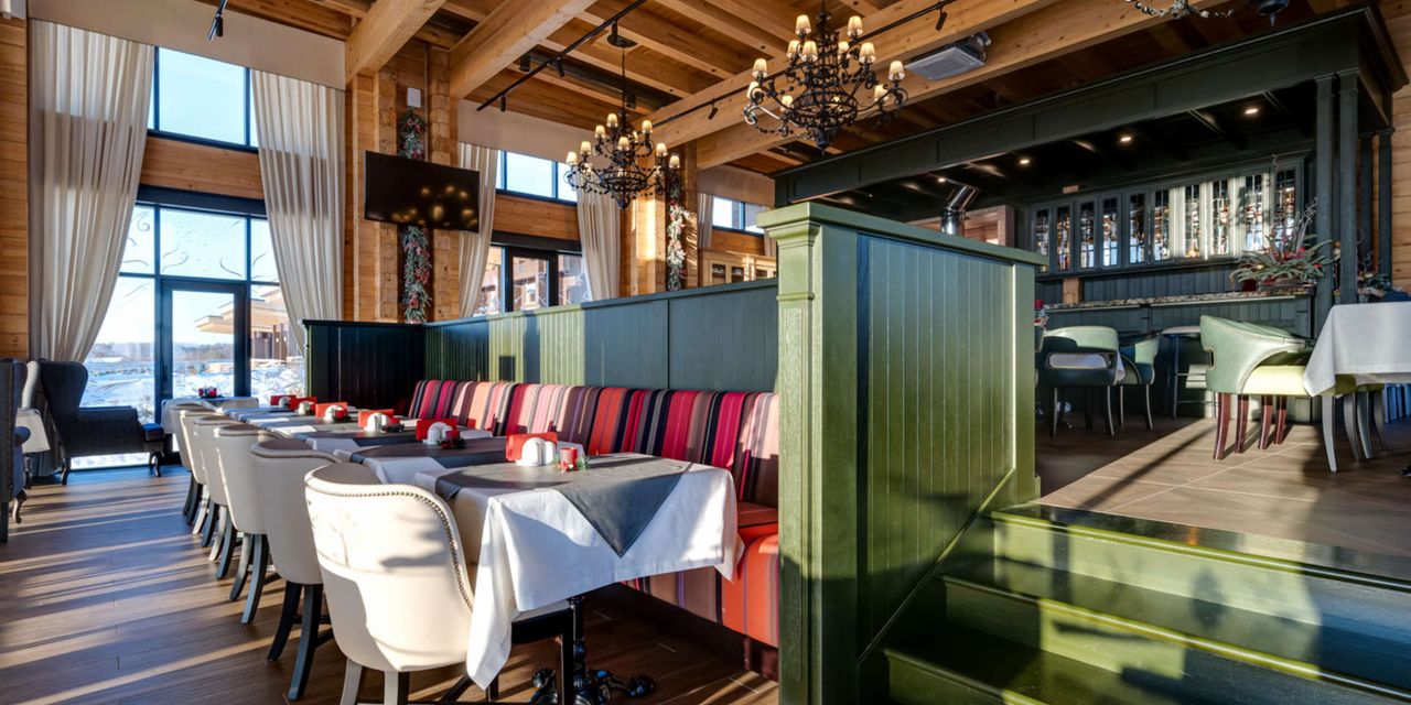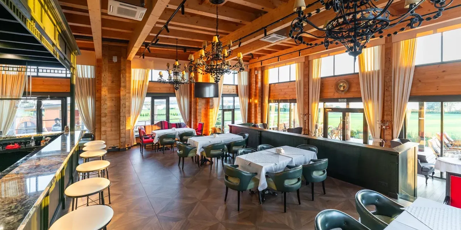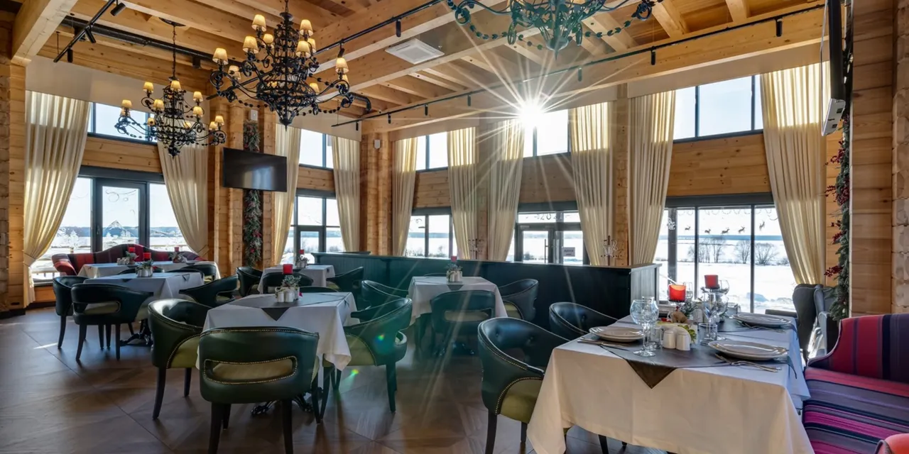 Панорамный ресторан предлагает блюда из фермерских продуктов; есть гастропавильон с печью на открытом воздухе.