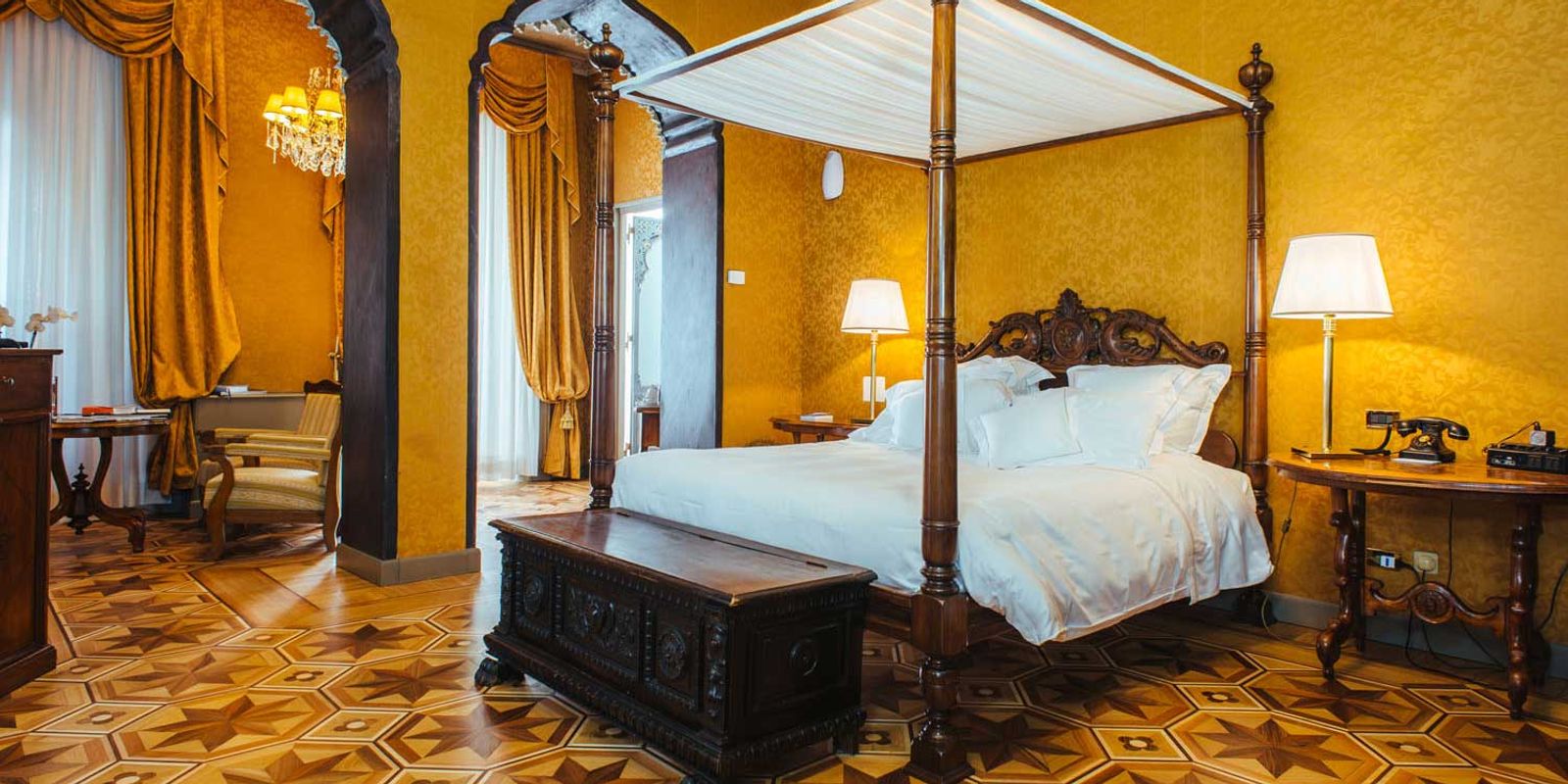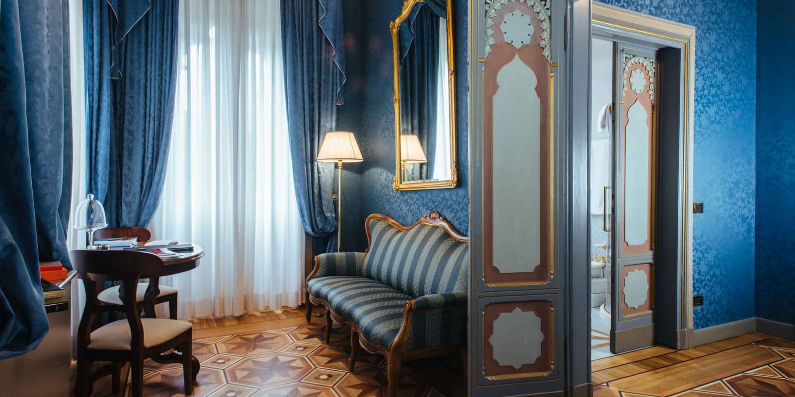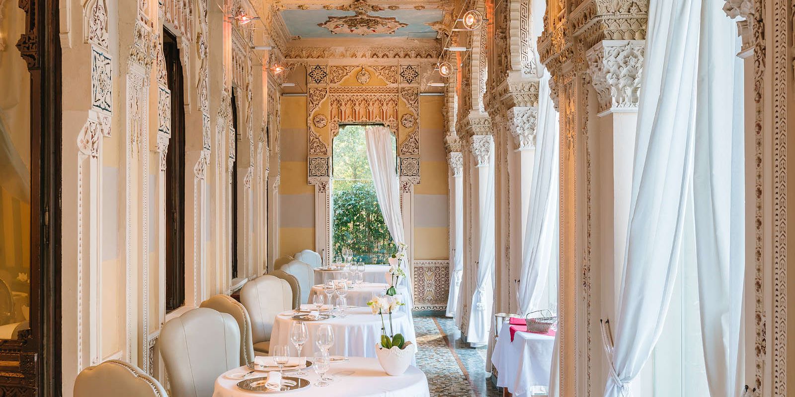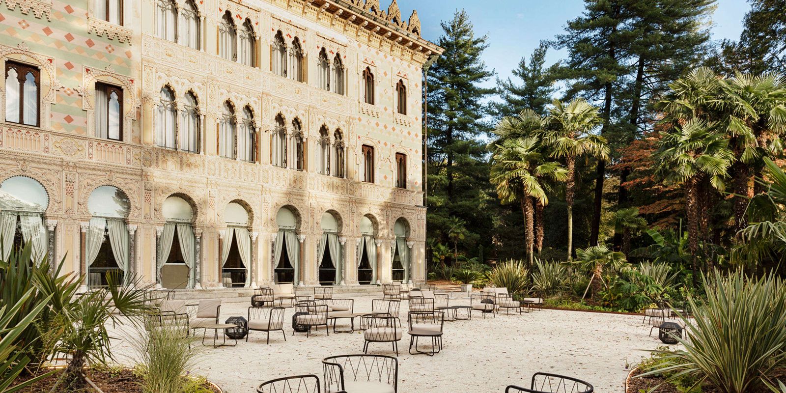 Villa Crespi из коллекции Relais & Chateaux — уникальный бутик-отель, расположенный на берегу озера Орта в Пьемонте. Его построил в 1879 году итальянский предприниматель, вдохновленный красотой Багдада — отель выполнен в стиле роскошного мавританского дворца с высокой башней, напоминающей минарет. Интерьеры украшены сложной резьбой, золотыми деталями и витражами, создающими атмосферу восточной сказки. Всего в отеле 14 номеров с уникальным убранством и антикварной мебелью.