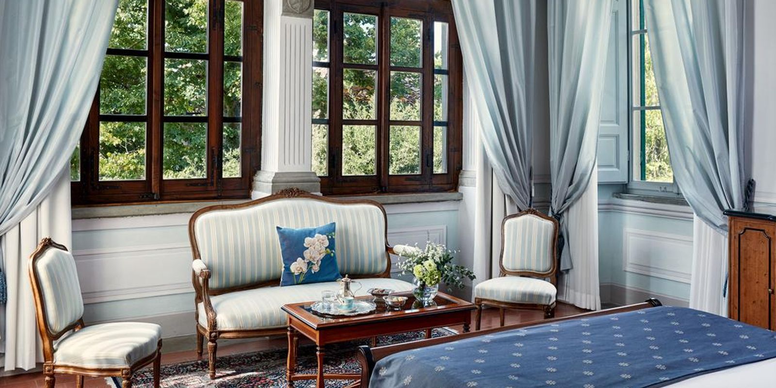 В декоре семейного отеля сохранились многие оригинальные черты виллы и различная антикварная мебель.