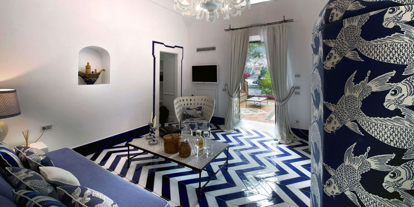Комнаты превосходно декорированы знаменитой майоликой из Виетри, традиционной мебелью, муранским стеклом. Отель каскадом спускается вниз по скалистому мысу, где каменные ступени и две шахты лифта ведут к пляжному клубу с террасами для загара и пристанью, предоставленными исключительно для гостей. Работают 2 ресторана средиземноморской кухни и бар.