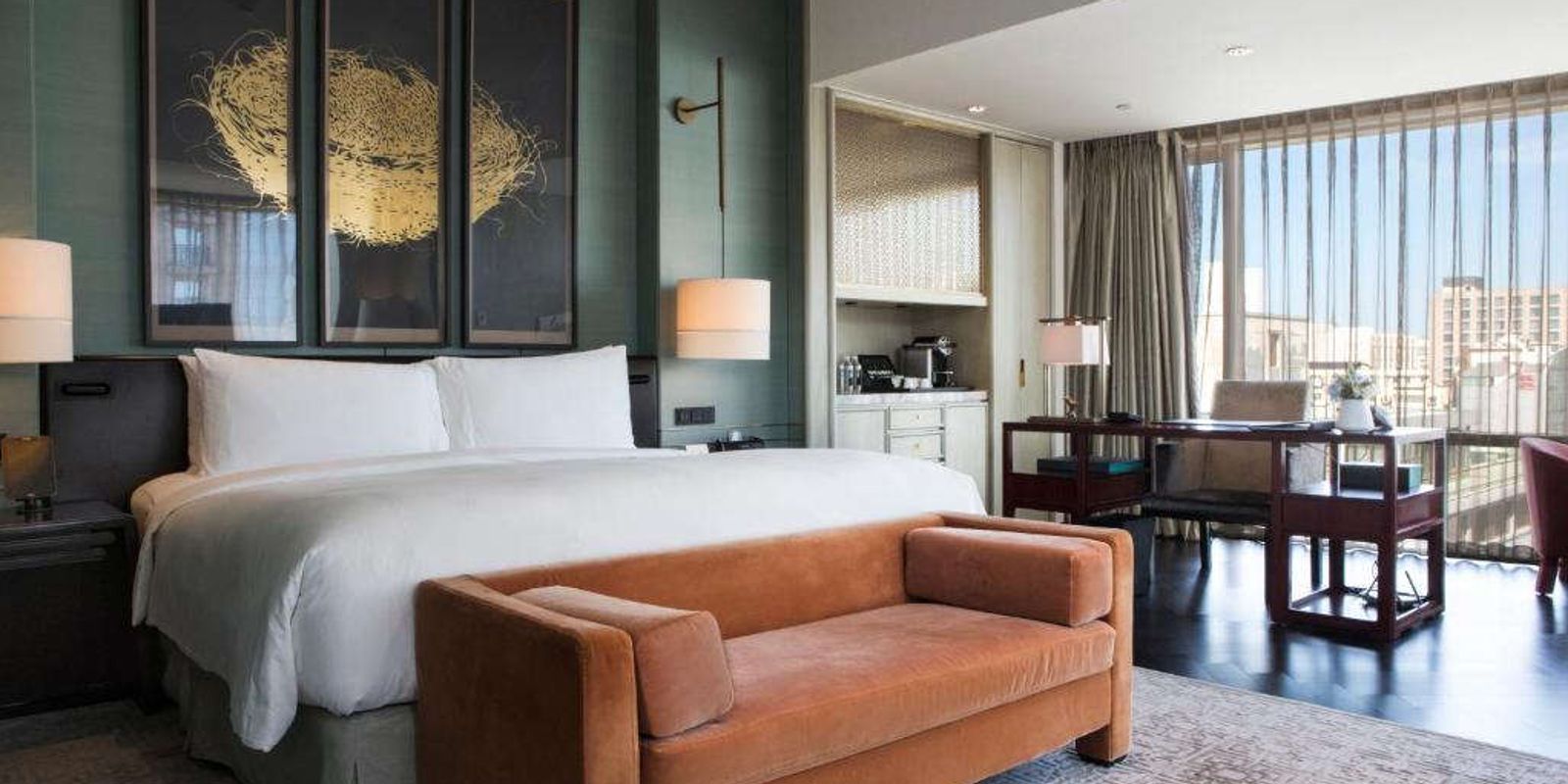 Эффектный Waldorf Astoria Beijing с его сияющим медно-бронзовым фасадом выглядит как один из самых гламурных отелей Пекина, но не стоит оставаться снаружи — настоящее волшебство начинается внутри. Над интерьерами работал дизайнерский дуэт Yabu Pushelberg, и эта работа достойна восхищения. Симпатичный внутренний двор, напоминающий о временах династии Мин, номера и общественные пространства переносят в эпоху домов-хутунов, оставаясь при этом подчёркнуто современными.