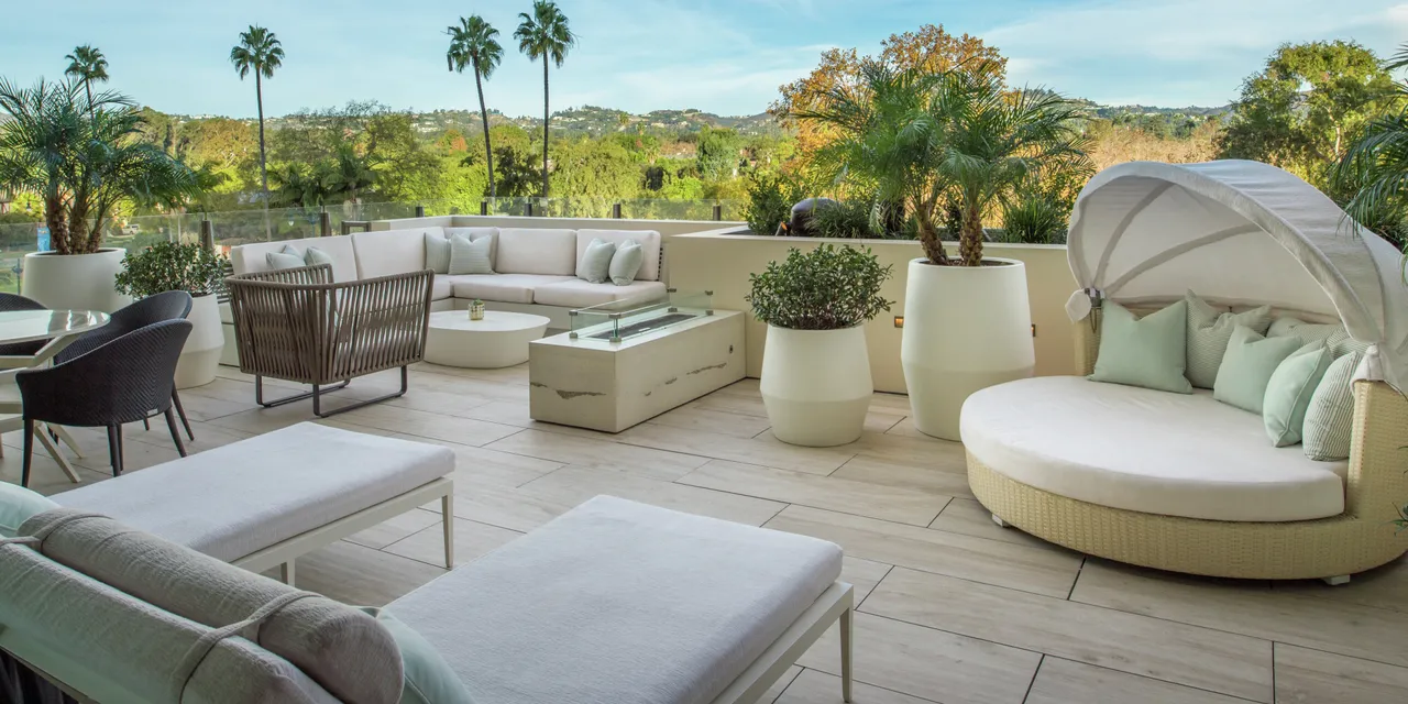В ясный день отсюда открывается вид на весь центр, а фирменные коктейли хороши всегда. Шеф-повар Espelette Beverly Hills Стив Бенджамин предлагает средиземноморское меню с упором на ультралокальность и сезонность; в спа-центре La Prairie роскошно оборудованы шесть процедурных кабинетов и работает салон красоты Трейси Каннингем.