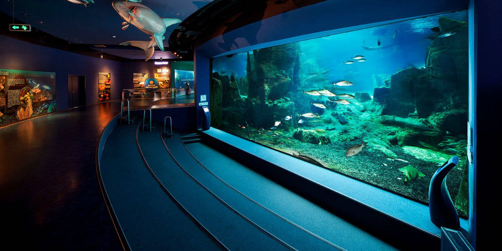 Хорошо разглядеть морских обитателей помогут большие дисплеи. В определённые дни и часы можно наблюдать за кормлением акул и скатов. Для детей есть игровая зона, где можно нарисовать свою рыбу, которая поплывёт в цифровом «аквариуме».
