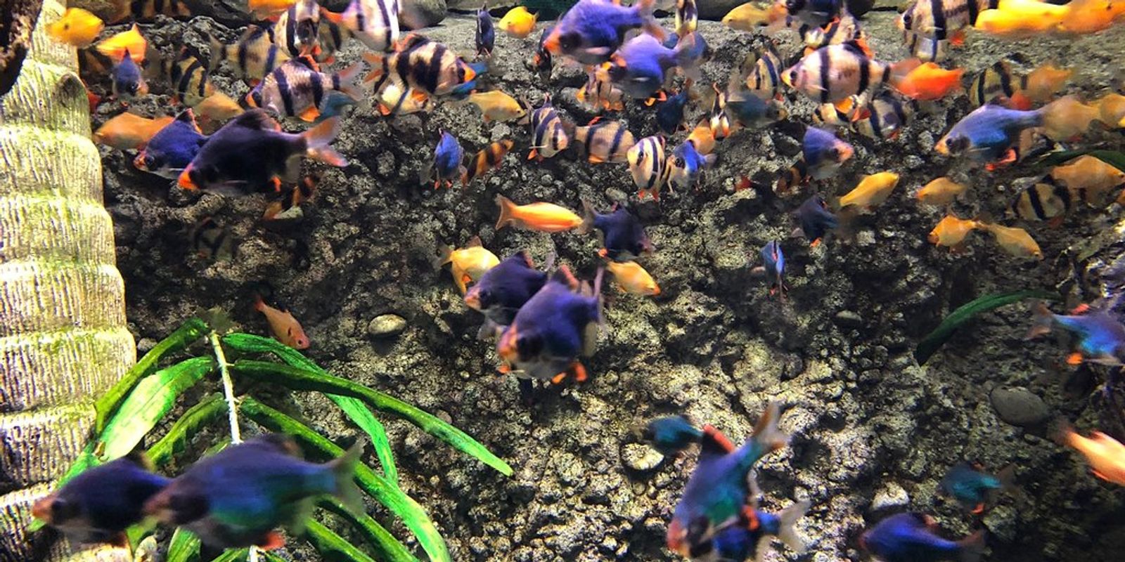 В аквариуме обитают более 200 видов рыб, 3 вида акул, 2 вида черепах: «Хоксбилл» и зеленые черепахи. Всего здесь можно увидеть более 15 000 животных, в том числе тех, которые обитают исключительно в оманских водах.