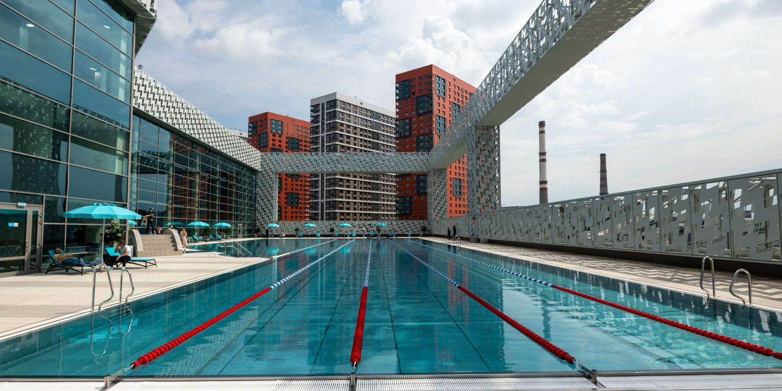 Новый, современный спортивный комплекс с двумя 50-метровыми бассейнами — закрытым и под открытым небом с ночной подсветкой, —сауной, тренажёрным залом и батутным центром на Автозаводской.