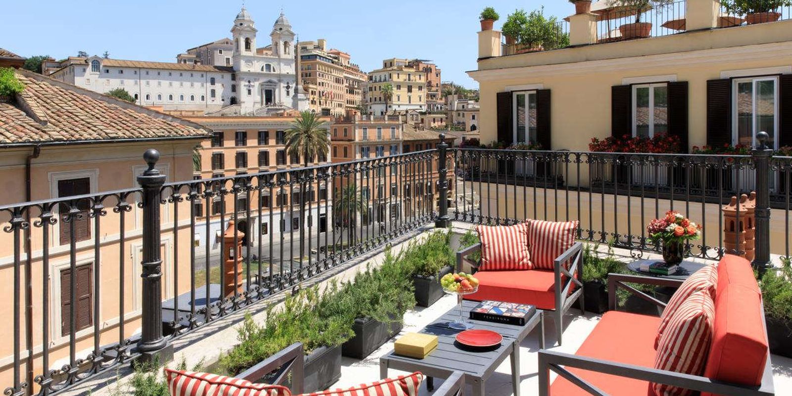 Гости могут наслаждаться великолепным видом с частной террасы на крыше, выходящей на площадь Испании в сторону Испанской лестницы и башен Тринита-деи-Монти, а также всеми услугами отелей Hotel de Russie и Hotel de la Ville.