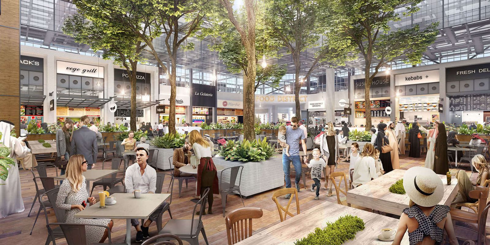Торговый центр концептуально сосредоточен вокруг внутреннего двора, архитектурно повторяя типичное строение европейских городов с центральной площадью и ответвляющимися улицами. Здесь откроют четыре развлекательных центра, мульплекс на 18 экранов, более 650 торговых точек и гипермаркет площадью 6 000 кв. м. Предусмотрены фудхоллы и большие арены для публичных мероприятий.