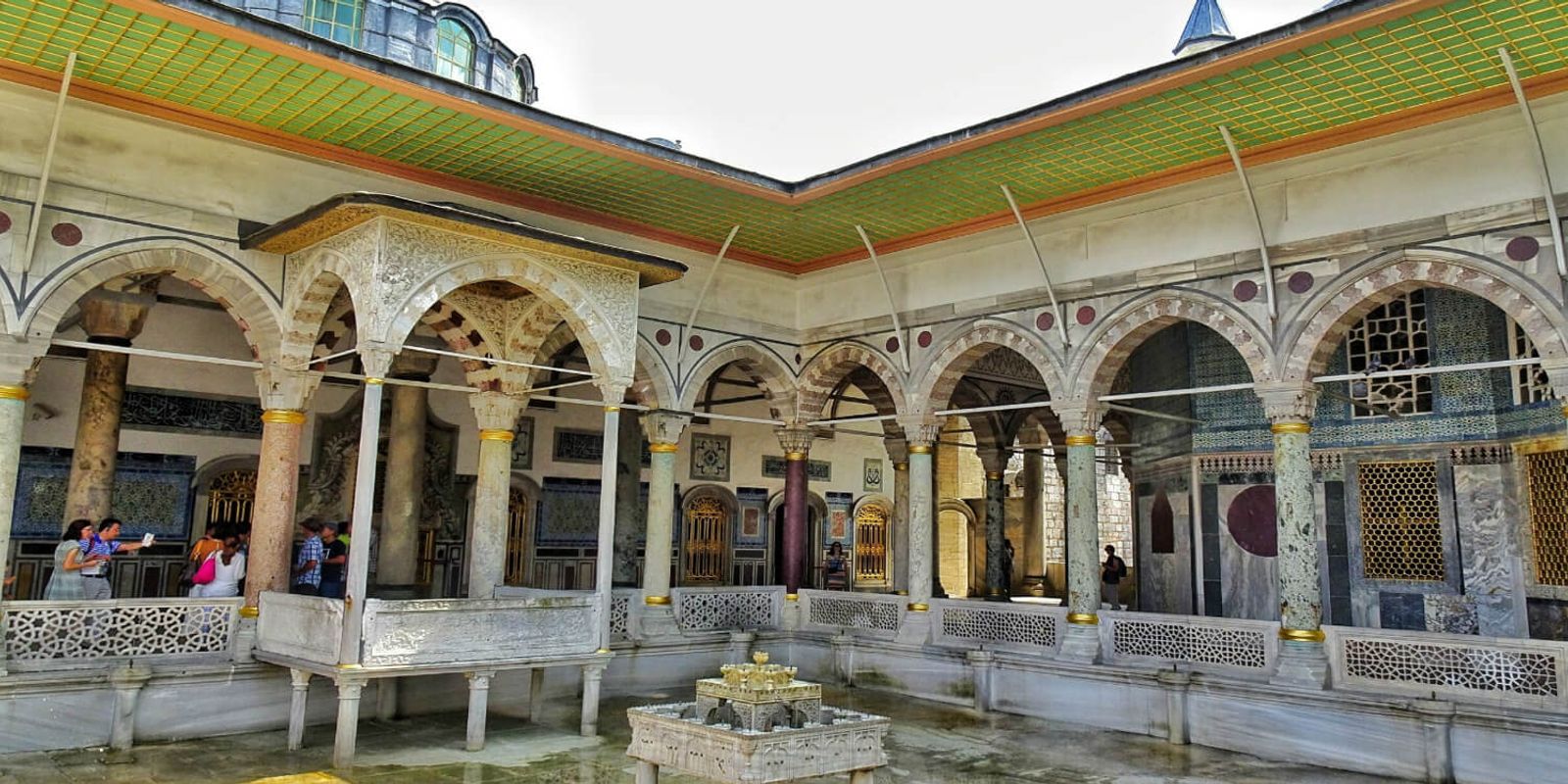 Топкапы – это огромный город-дворец: здесь были четыре двора с жилыми постройками, гарем султана, мечеть, церковь св. Ирины, казначейство, конюшни, хаммам и другие объекты.