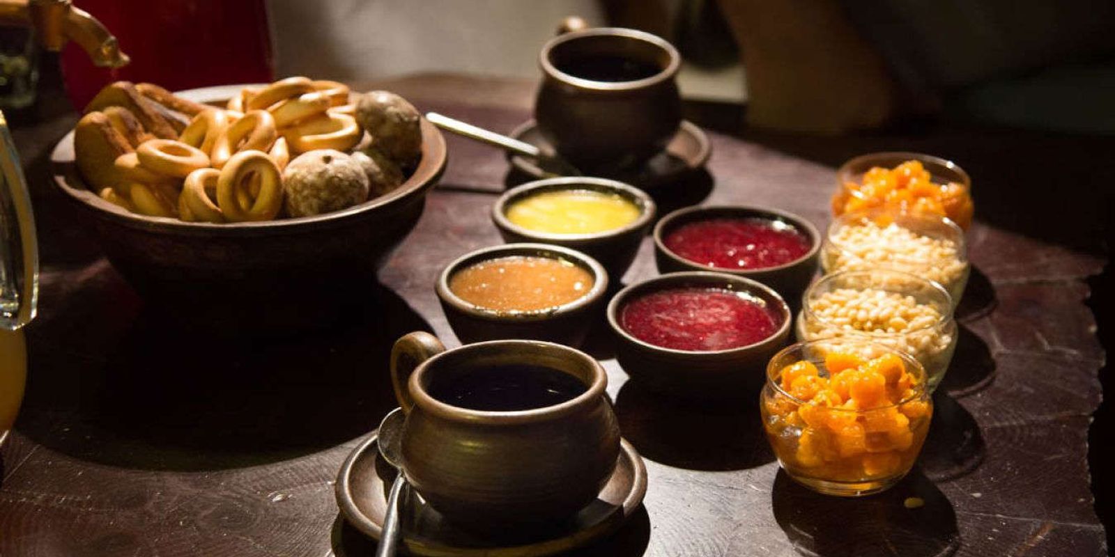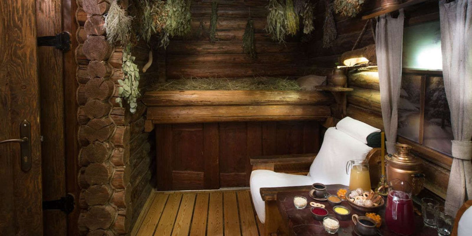 К посещению бани подготавливаем организм за чайным столом с кружкой особого таёжного настоя на травах и ягодах. Горячий напиток увеличивает количество жидкости в организме, что очень важно, учитывая предстоящие события. Чайная церемония включена в стоимость и проводится с травяным чаем, сушками, мёдом, вареньем и морошкой в собственном соку. Так же, во время проведения банной программы, гостям будут предложены морсы из северной ягоды, домашний хлебный квас и минеральная вода.