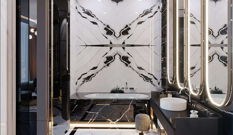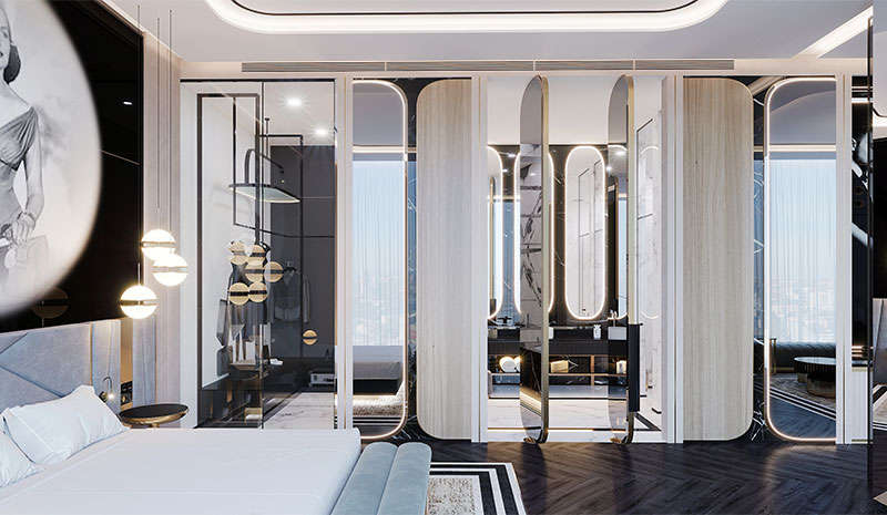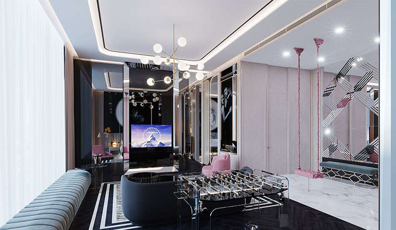 Представительский люкс с одной спальней, гостиной и комнатой отдыха с роскошным черным диваном и нежно-розовым креслом. Монохромный стильный дизайн подчеркивают огромные черно-белые постеры на стенах и каррарский мрамор большой ванной комнаты.