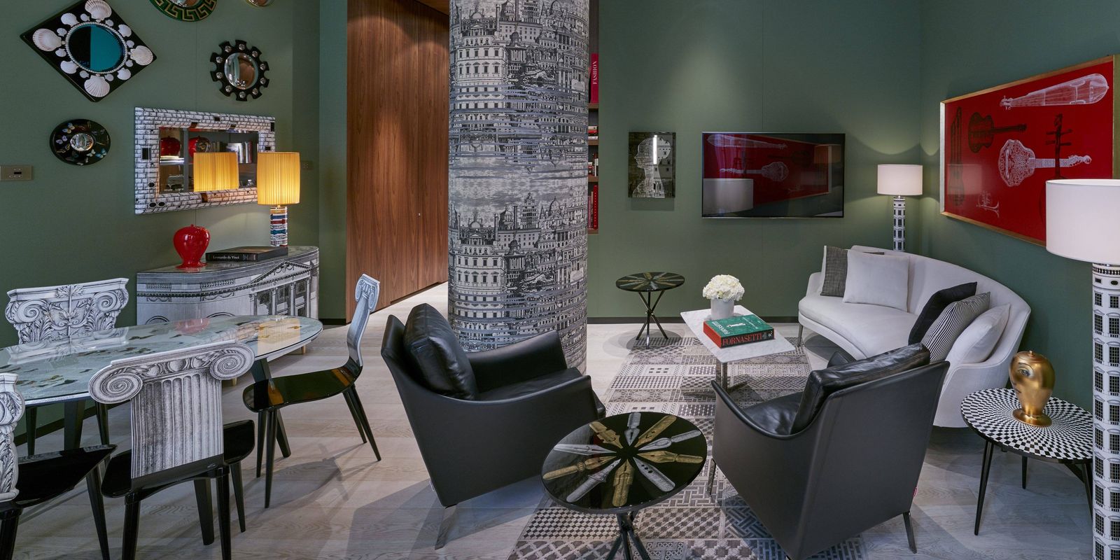 Этот просторный люкс с одной спальней отдает дань уважения любви дизайнера, родившегося в Милане, к причудам, с творениями мастера на каждом шагу — гостиная, украшенная сюрреалистическими обоями и оригинальной мебелью, является особенно выдающейся.
