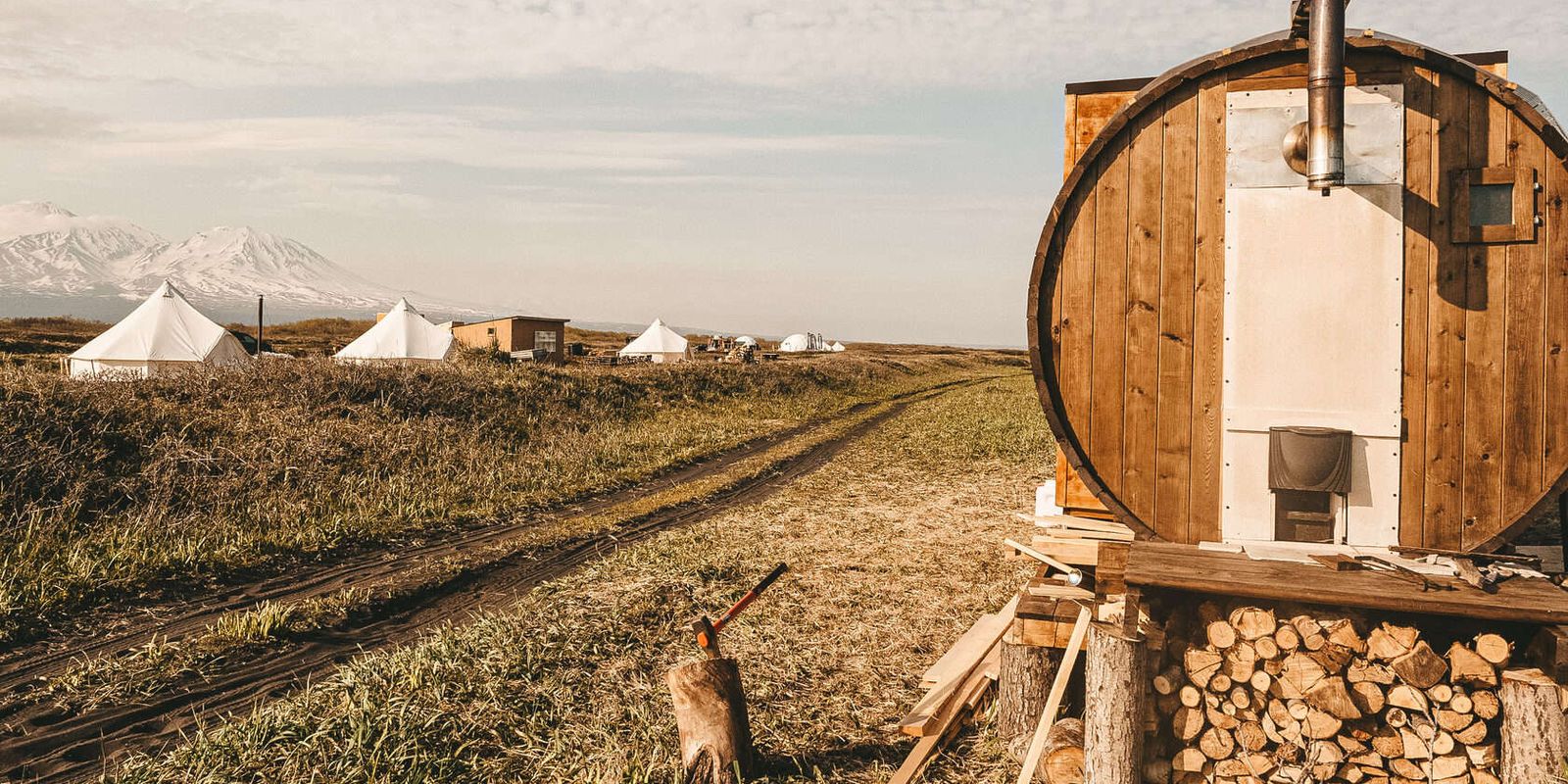 Величественный Тихий океан, уникальный Халактырский пляж с чёрным вулканическим песком, уютные, тёплые шатры с печкой и удобной мебелью и обзор на три великолепных вулкана. Баня в бочке из кедра на берегу океана и романтические вечера на побережье — визитная карточка этого места.