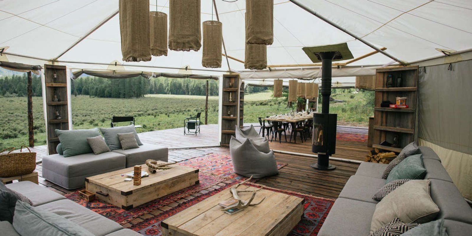 Крохотный лагерь из шести шатров, приподнятых на деревянных настилах, дарит роскошь уединения: здесь нет лишних людей и случайных встреч. Зато есть табуны диких лошадей, горные козы и белки.