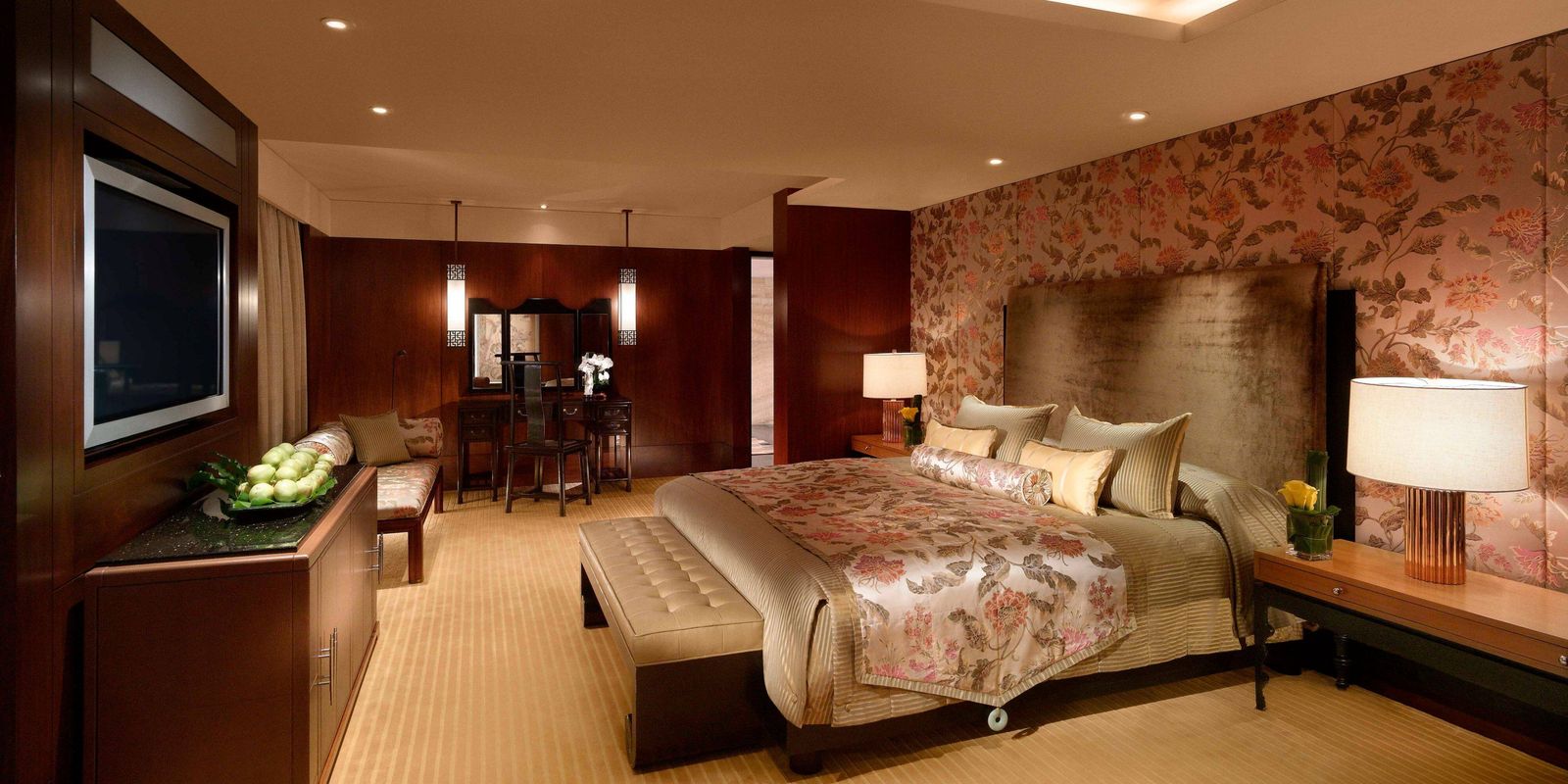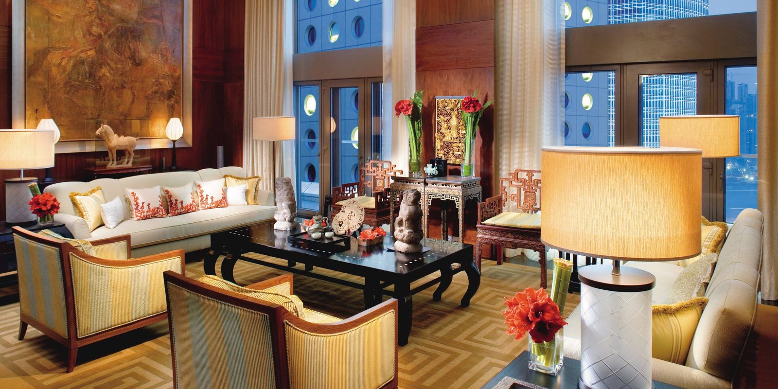Тем, кто ищет уединения в большом городе, наверняка понравится просторный люкс Mandarin с двумя спальнями. Гостиная, отделанная деревянными панелями, обставлена бесценными предметами старины и произведениями искусства в азиатском стиле. Из панорамных окон номера открываются чарующие виды на гавань Виктория, а терраса простирается по всей длине люкса с двух сторон.