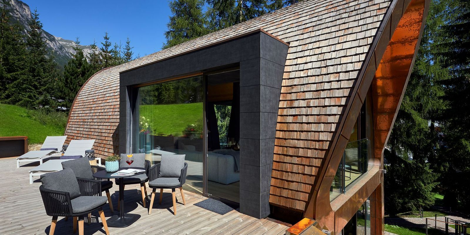 Chalet Miо на курорте Альта-Бадия было построено в 2018 г. известным архитектором Карлом Хайнцем Каслунгером. Его главная отличительная особенность — уникальная модернистская архитектура и дизайн интерьеров. Огромные панорамные окна открывают завораживающие виды на горы, что особенно ценно по вечерам (Доломиты отдельно славятся своими живописными закатами).