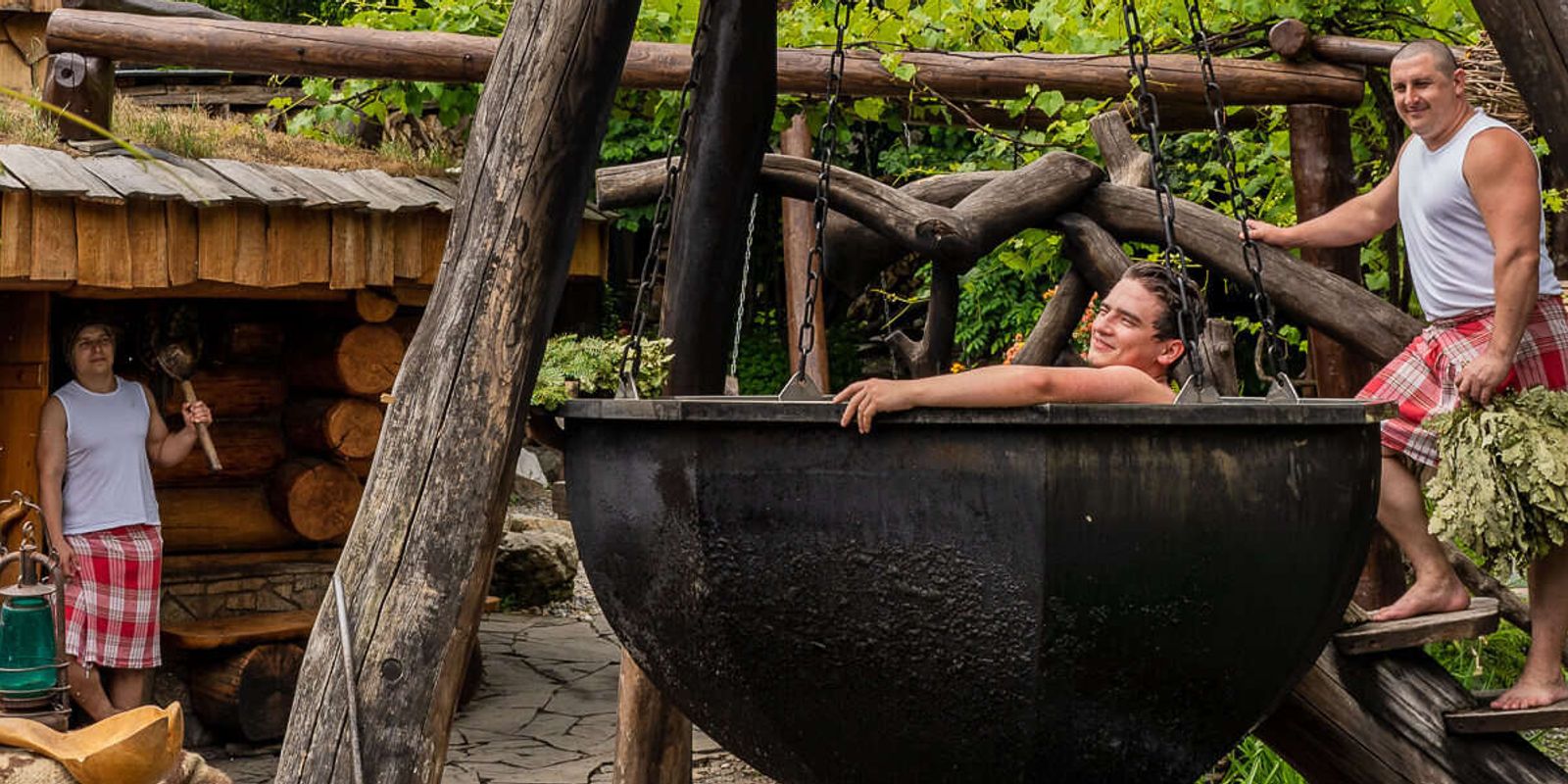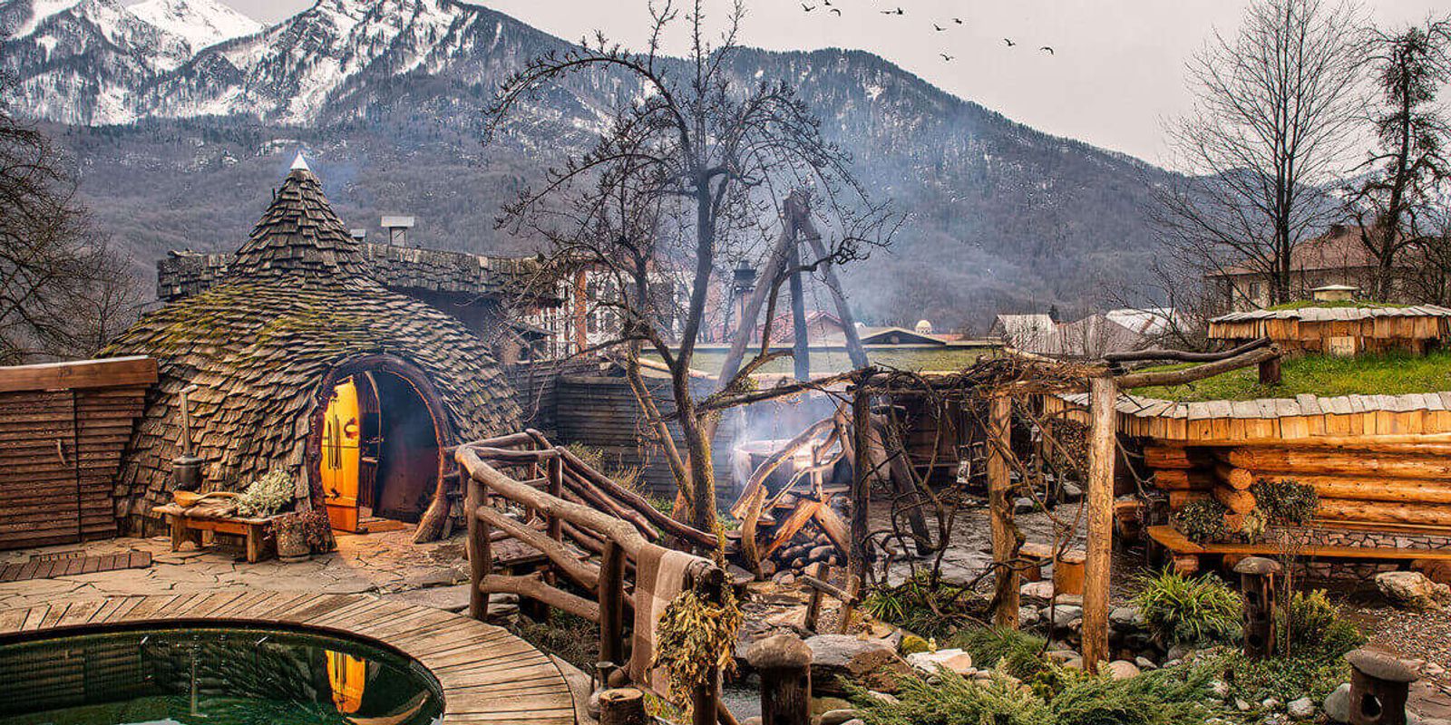 Есть массажи, выкатывание пихтовым веником, растирание мёдом и солью, обливание пивом и квасом, аромапарение в черепичной полусфере и опции с отварами горных трав. Для детей – мягкие виды парения, для мужчин – «Сталеварский экстрим» на высоких температурах. На контрасте хороши подогреваемый бассейн и купель с родниковой водой. А после всех банных ритуалов гостей ждут чайные сеты с краснополянским мёдом в чайной комнате с видом на горы.
