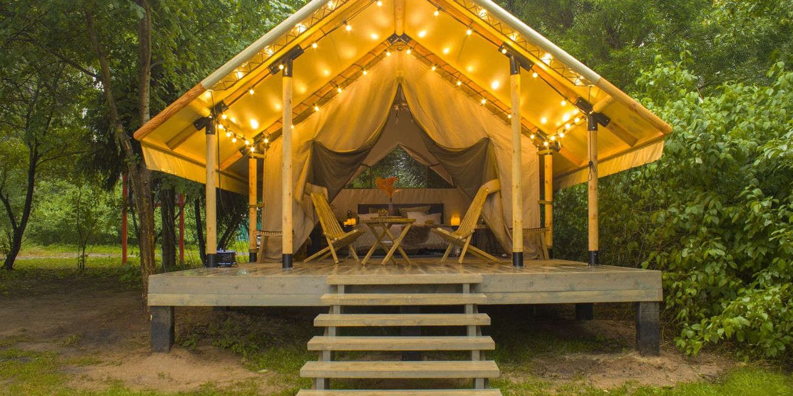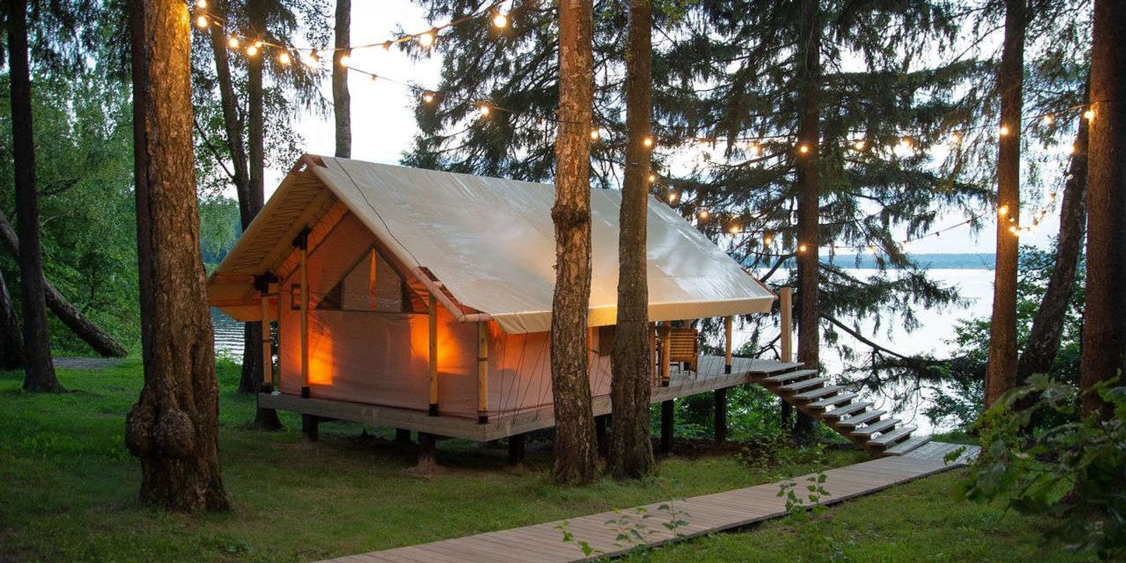 «Мы совсем рядом», — рекомендуют себя устроители глэмпинга «Под небом» и не преувеличивают: модульный отель пятизвёздочного уровня выстроен на берегу Пестовского водохранилища всего в 35 км от Москвы по Ярославскому шоссе.