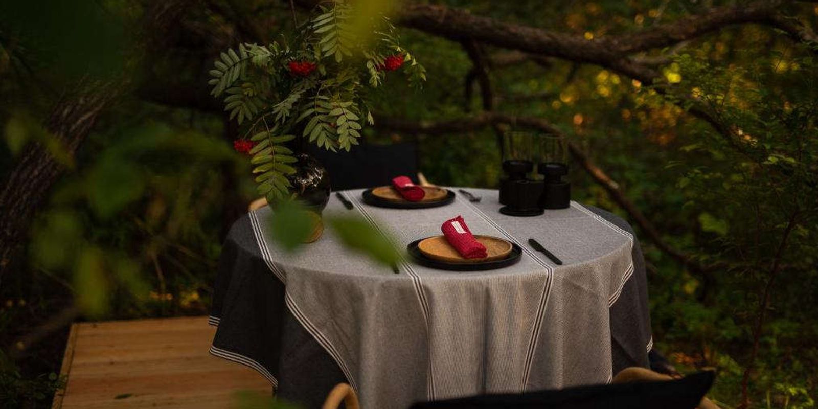 Десять шатров бережно интегрированы в пространство реликтового леса: сосны, дюны, море и свежий бриз. Каждое жилище, декорированное в скандинавском стиле, оборудовано всем необходимым для абсолютного комфорта: кровати queen size с белоснежным бельём, ортопедическими матрасами, тёплыми воздушными одеялами, гипоаллергенными подушками и электропростынями. На открытых террасах организованы уютные обеденные зоны.