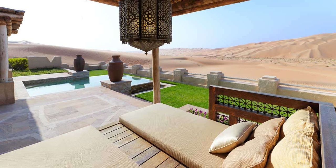 Насладиться отдыхом и затеряться в бескрайней пустыне можно на вилле Royal Pavilion с бассейном. Это отдых среди арабской роскоши и дизайна с использованием местных изделий ручной работы. Гости смогут освежиться в глубоком бассейне или скрыться от жары в тенистой беседке за обедом или ужином под звездным небом, который организует дворецкий.