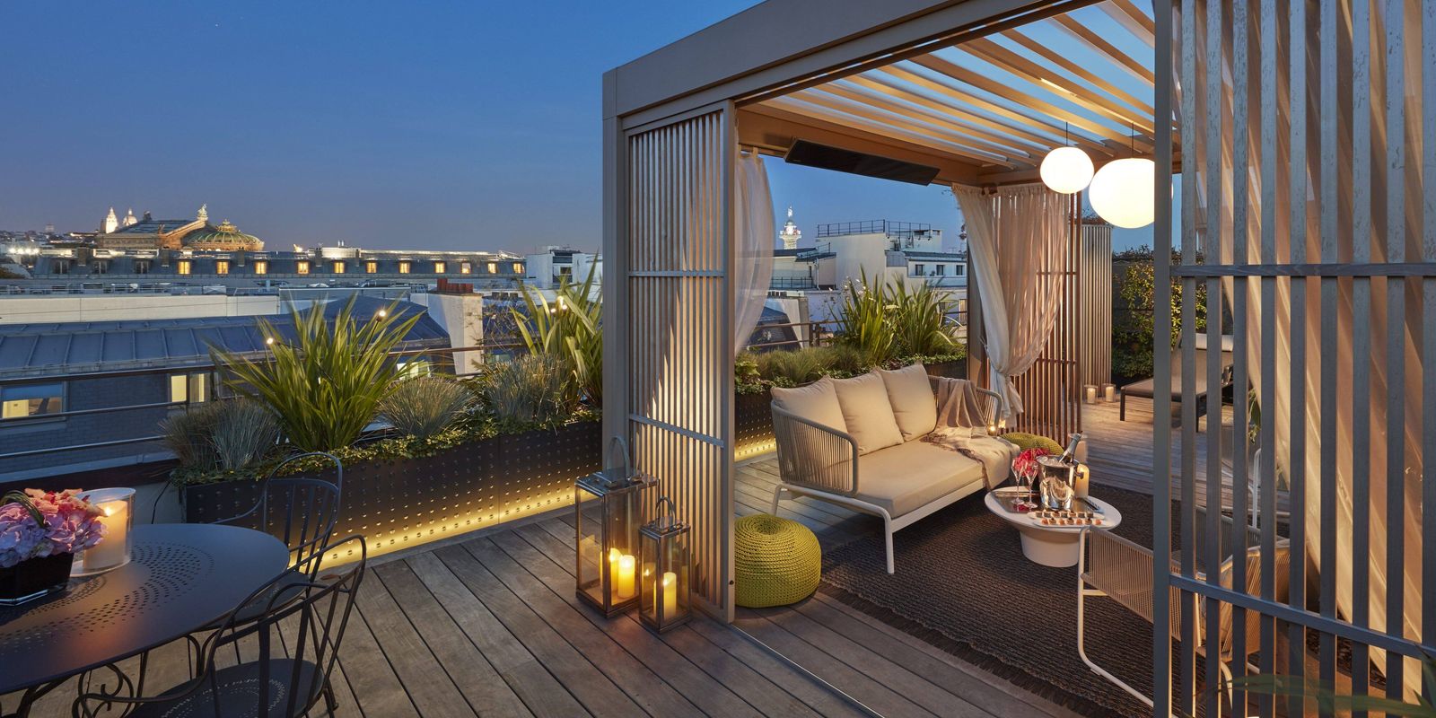 Идеальная сценография: бокал шампанского в бело-золотой гостиной, спа-процедуры на частной террасе номера, огромная ванна, идеально расположенная для наслаждения мерцанием Эйфелевой башни ночью.