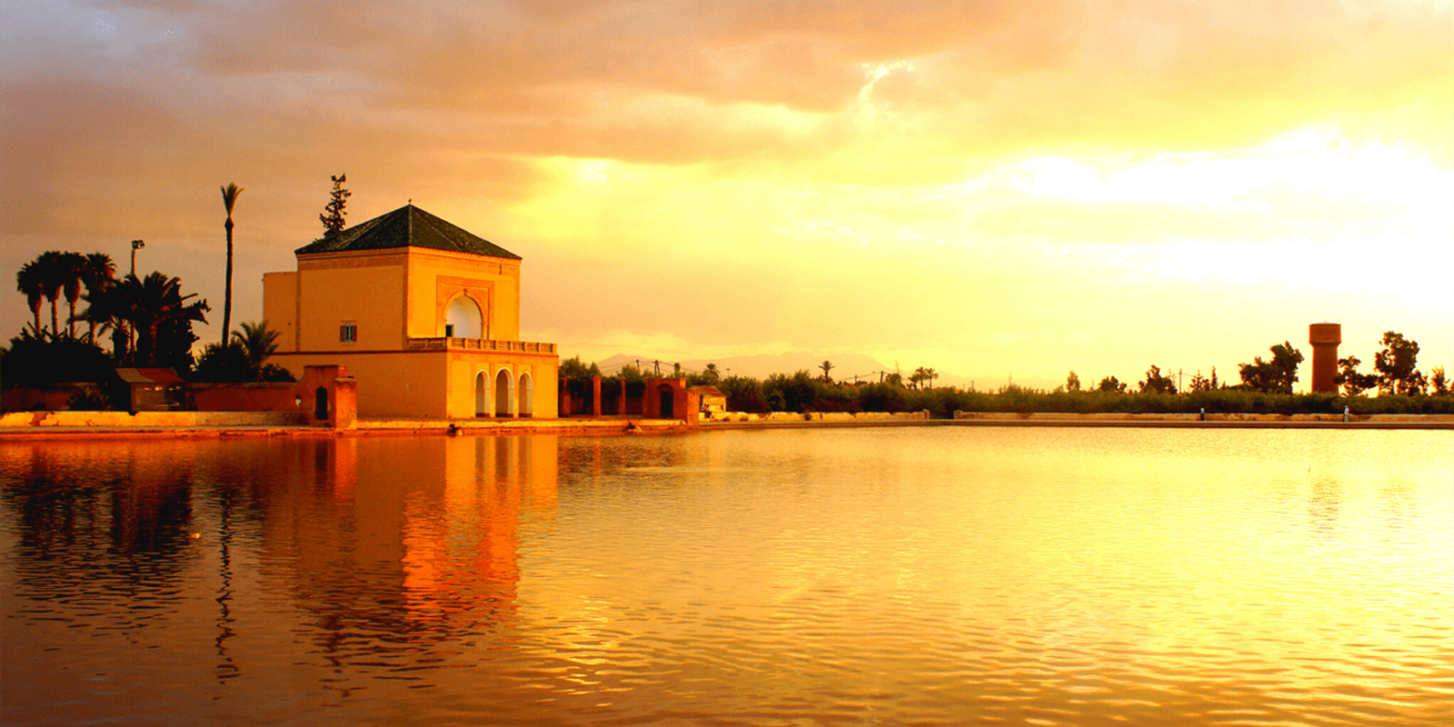 Сады Менара — самый знаменитый парк Марракеша, расположенный у подножия Атласовых гор. Они были созданы еще в 12 веке основоположником династии Альмохадов калифом Абд-аль-Мумином. Здесь культивировались, тестировались и акклиматизировались новые виды и сорта растений.