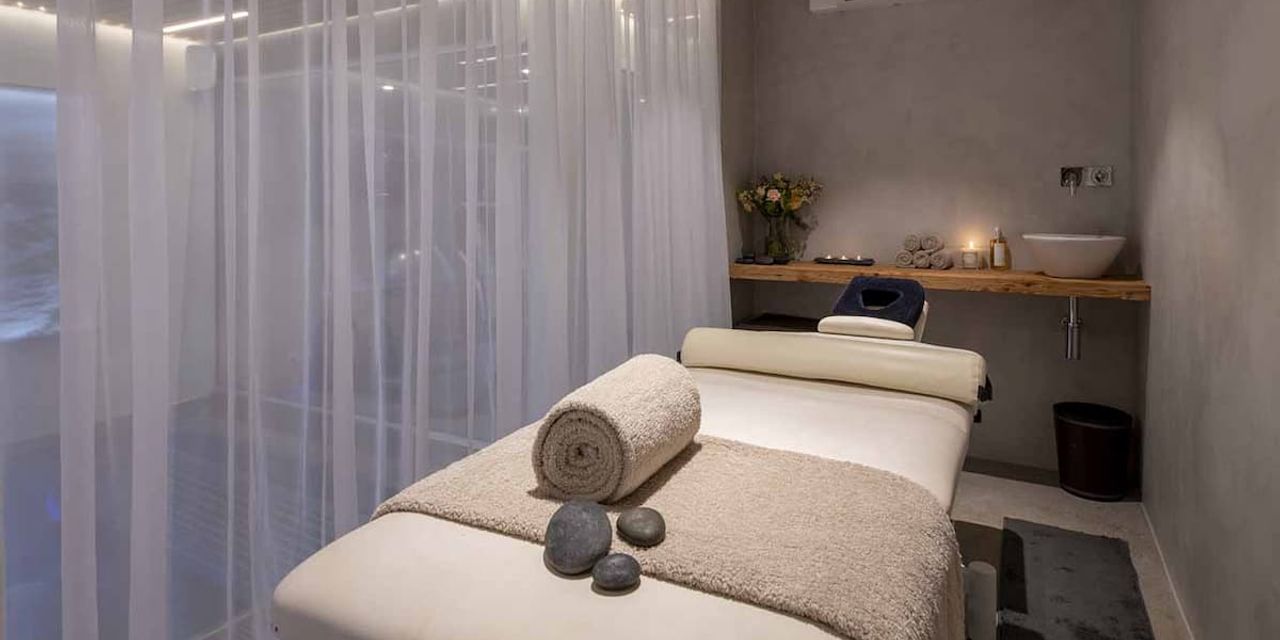 Спа-зона для отдыха после катания включает бассейн с противотоком, биосауну, хаммам, массажную комнату и фитнес‑зал.