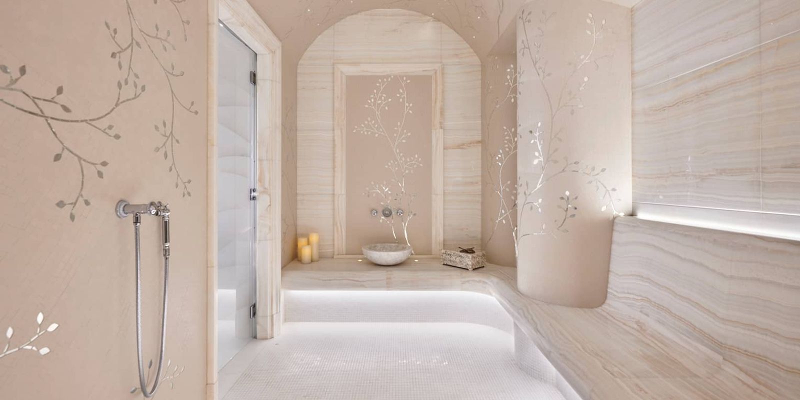 К услугам гостей — 17-метровый бассейн, хаммам, гидромассажный бассейн, нагретый до 30 градусов Цельсия, салон красоты.
