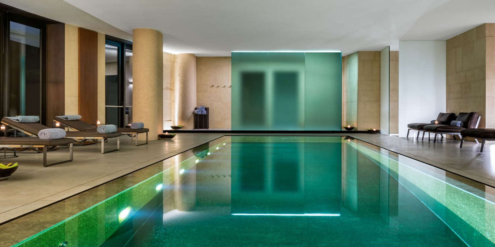 Дневной свет проникает сквозь стеклянные стены и освещает золотую плитку бассейна. Сауна и гидромассаж позволяют гостям полностью расслабиться. А четыре процедурных кабинета и спа-люкс для пар оборудованы для индивидуальных ритуалов. Предлагаются все ритуалы современного оздоровления.