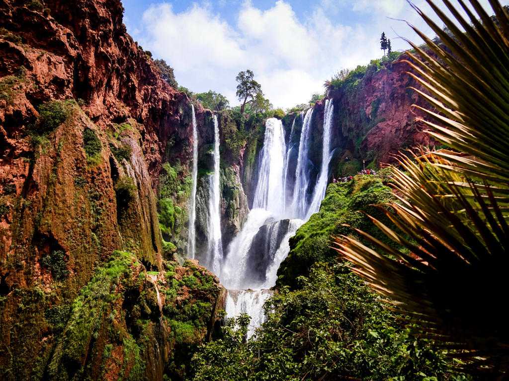 Расположен он на высоте 1800 метров, воды водопада спускаются вниз несколькими каскадами, образуя три основных потока. На вершинах склона расположены древние мельницы, которые работают по сей день. На закате можно полюбоваться красными скалами и берберскими макаками, которые приходят к водопаду, чтобы поесть плоды растущего неподалеку инжира.