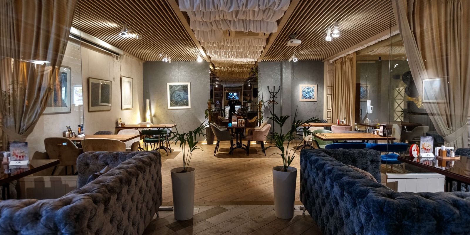 Открываются рано, закрываются поздно. В космополитичном сезонном меню — татарская кухня, русская, итальянская и японская. Завтраки от шефа с половины восьмого утра, днём — бизнес-ланчи, с семи вечера — живая музыка и диджей-сеты. Интересные десерты собственного изготовления. В барной карте — классические и авторские коктейли по ассоциациям: горький, сладкий, цитрусовый, фруктовый, ягодный.