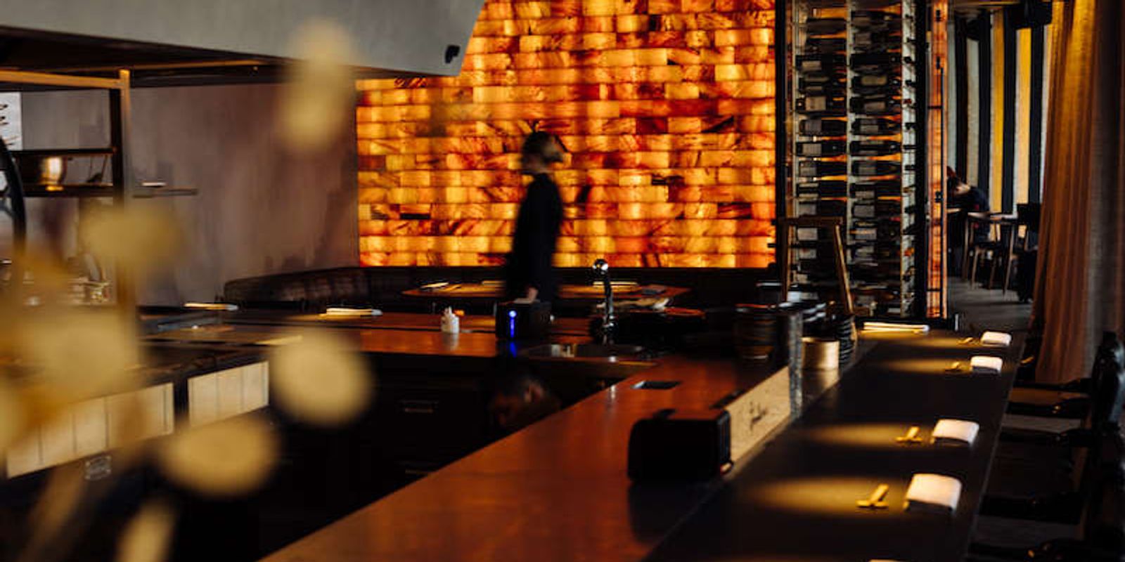 Интерьер, созданный сестрами Сундуковыми, продолжает заложенную концепцию. Он изыскан и дорог, напоминая японскую шкатулку, где свет и тень играют отблесками на драгоценных камнях. Главная драгоценность — самый большой в Москве кастомный гриль с открытым огнем, окруженный шефс-тейблом.