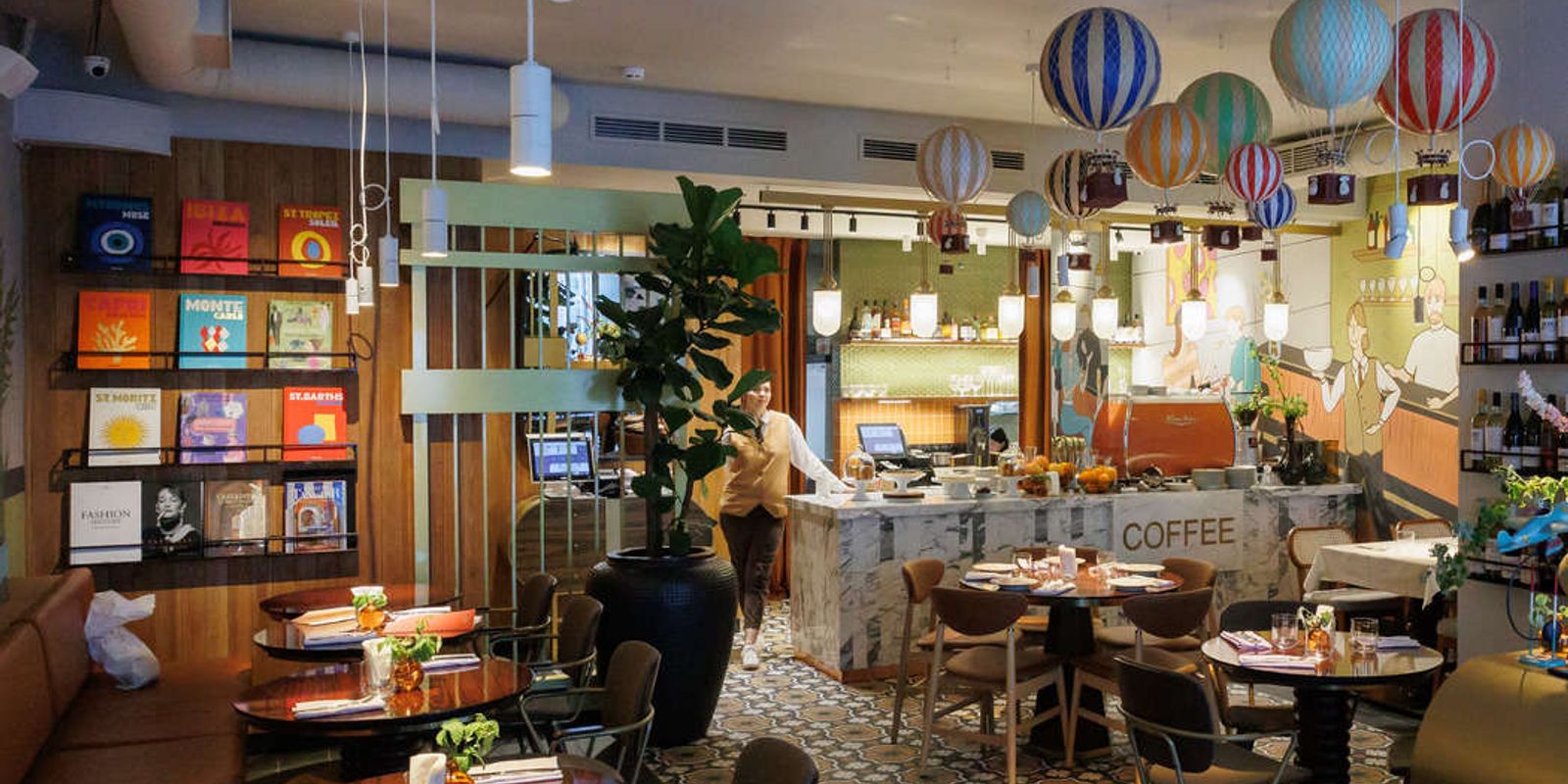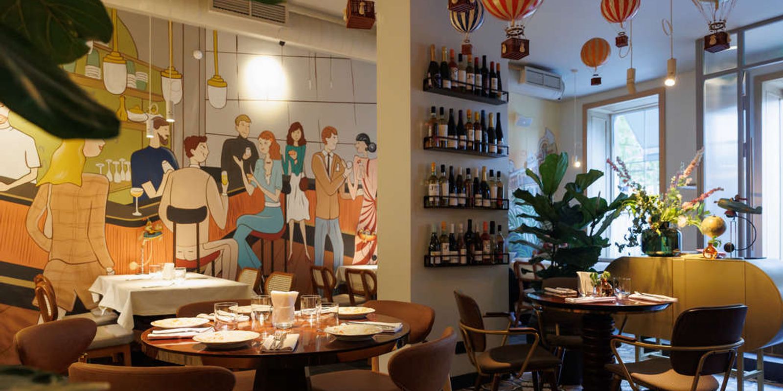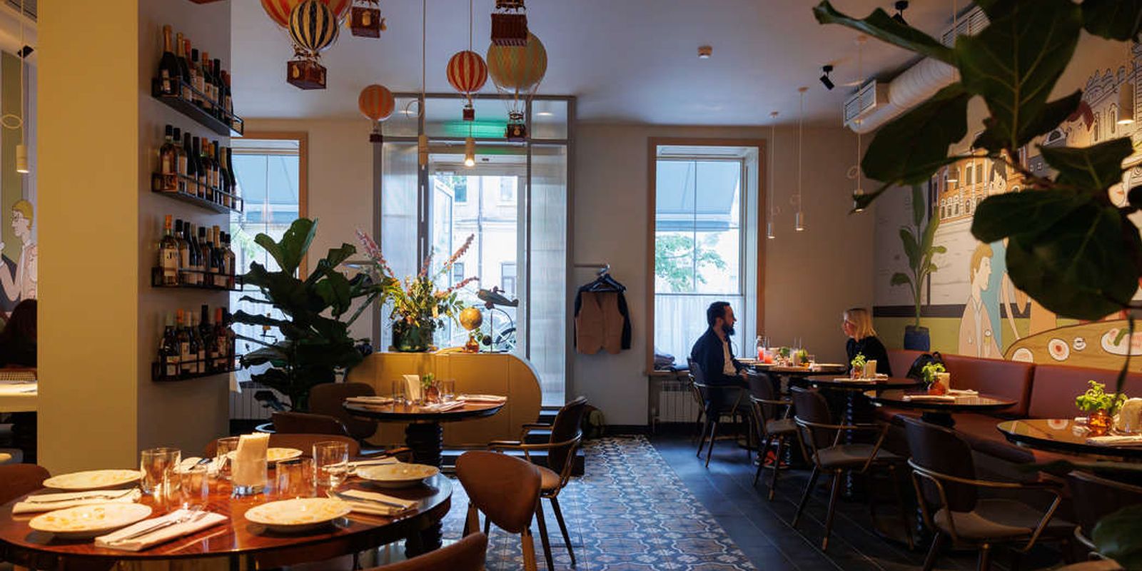 Концепция этого проекта Fine Group — гастрономические и визуальные впечатления от путешествий по миру. Идея нашла своё отражение в дизайне студии Krivtsova&Redina: тёплые тона, красочные расписные стены с казанскими достопримечательностями, воздушные шары, на полках — книги о путешествиях.