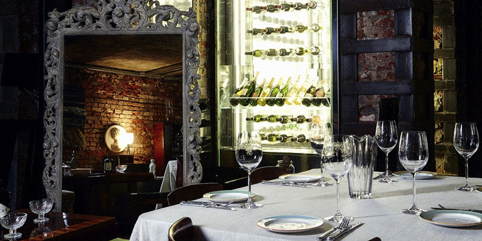 В центре заведения — стеклянный винный шкаф с хорошими запасами, а также аквариум с морскими гадами, любой из которых может быть приготовлен и съеден прямо за уже приобретенным вами старинным столом, например.