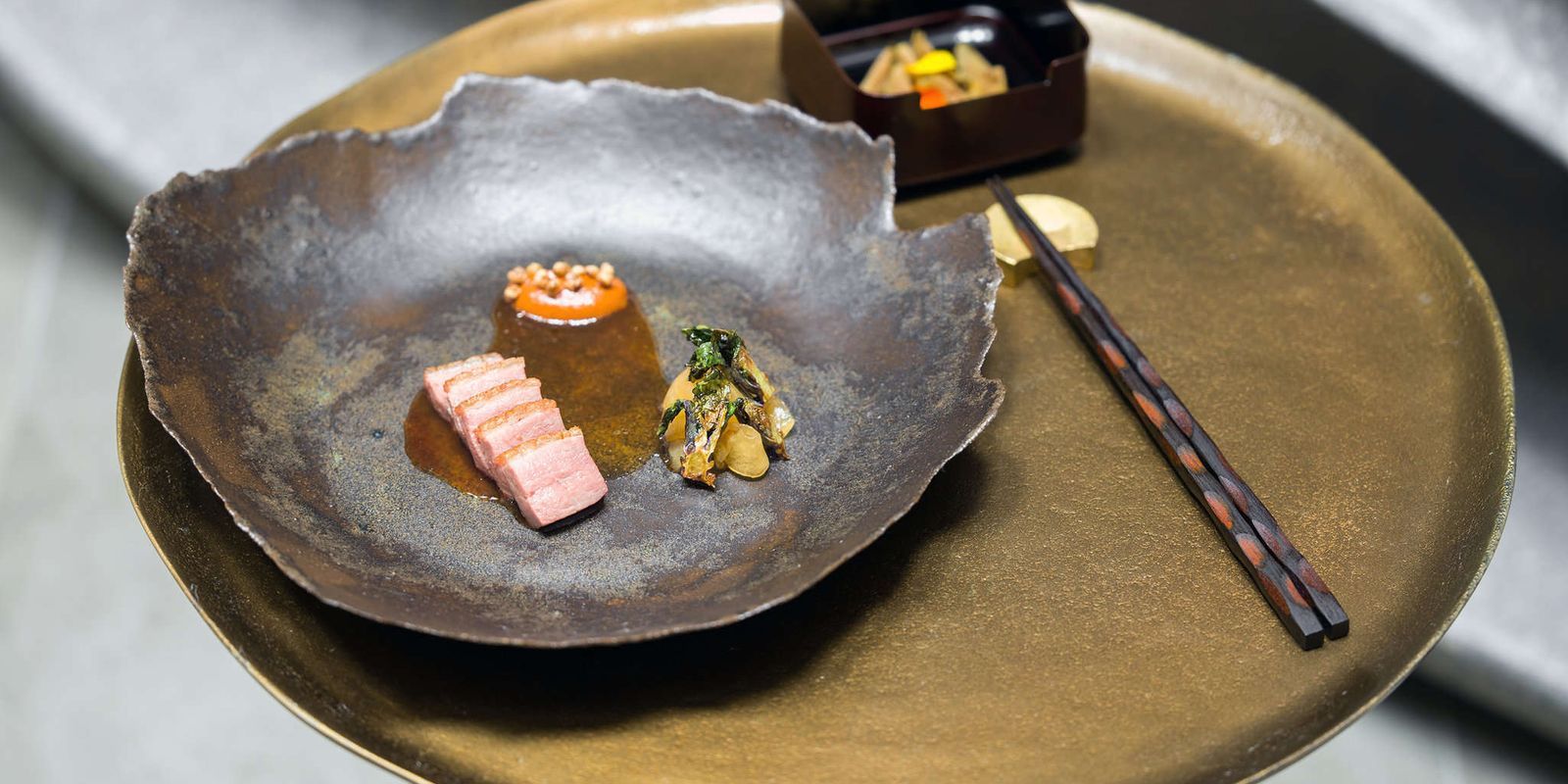 Дегустационное меню состоит из 10 блюд. Оно вдохновлено корейскими традициями, но исполнено в современной технике.